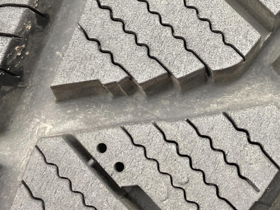 Yet there’s much more to the engineering than simply altering the rubber compound. The tread blocks are molded with Bridgestone’s proprietary multicell compound (which, under a microscope, looks like the surface of a sponge). The multicell structure helps remove the thin layer of water between a tire and the road, which significantly improves braking on ice. In addition, the tread blocks are molded with thousands of sipes, or tiny cuts, that grab and hold the snow – snow sticks to snow effectively (that’s why you can build a snowman) – to further improve traction.