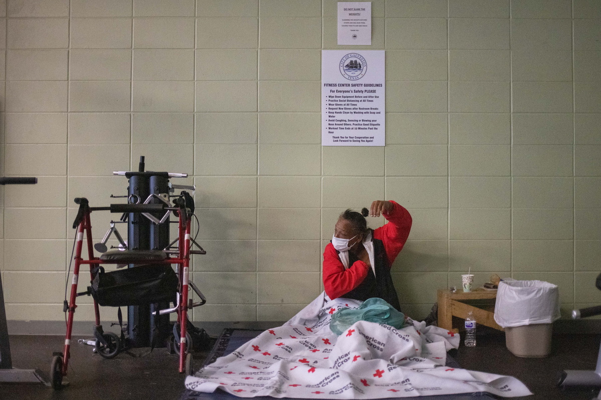 In Galveston on the Gulf Coast of Texas, a pop-up shelter with heat but no running water had allowed about three dozen people to huddle overnight before they were ushered back out into the cold on Thursday morning to let cleaning crews get it ready for Thursday night.