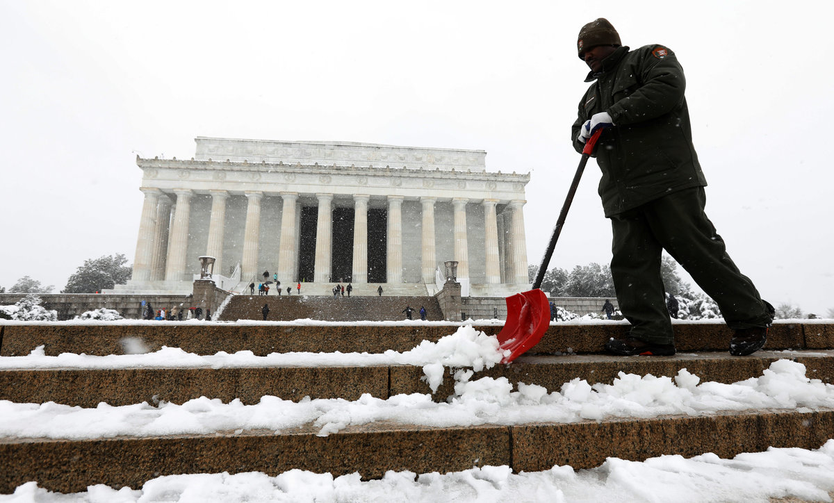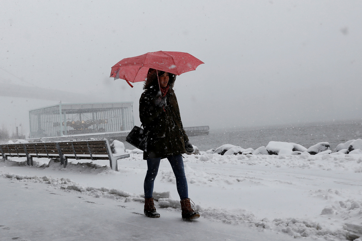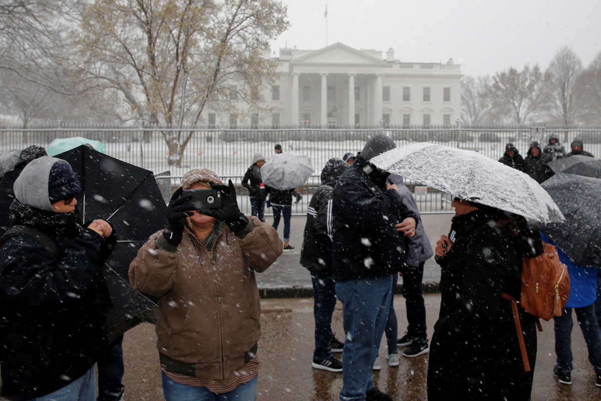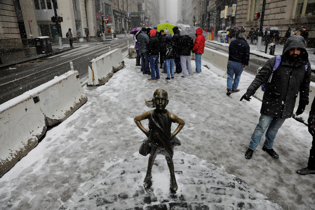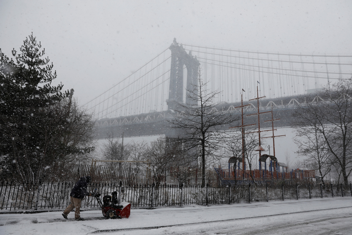 Pedestrians walk past a snow covered "Fearless Girl" sculpture during a late season nor'easter in New York, U.S., March 21, 2018. REUTERS/Lucas JacksonVisitors hold their umbrellas against the snow as they walk along the Vietnam Veterans Memorial on the National Mall in Washington, U.S., March 21, 2018. REUTERS/Kevin LamarquePeople make their way along the National Mall during a snowstorm in Washington, U.S., March 21, 2018. REUTERS/Kevin LamarqueSnow is cleared from steps leading up to the Lincoln Memorial during a snowstorm in Washington, U.S., March 21, 2018. REUTERS/Kevin LamarqueWorkers clean snow off a sidewalk in front of the Flatiron building during a late season nor'easter in New York, U.S., March 21, 2018. REUTERS/Lucas JacksonPeople brave the snow around the Washington Monument in Washington, U.S., March 21, 2018. REUTERS/Leah MillisA woman and child walk along the side of the National Mall in Washington, U.S., March 21, 2018. REUTERS/Leah MillisWorkers clear the steps of the House of Representatives on Capitol Hill in Washington, U.S., March 21, 2018. REUTERS/Aaron P. BernsteinA woman walks in the snow during a winter nor'easter storm in the Brooklyn borough of New York, U.S., March 21, 2018. REUTERS/Brendan McDermidPeople sled in the snow outside the U.S. Capitol in Washington, U.S., March 21, 2018. REUTERS/Aaron P. BernsteinA pedestrian walks through the snow outside the U.S. Capitol in Washington, U.S., March 21, 2018. REUTERS/Aaron P. BernsteinPedestrains walk through the snow outside the U.S. Capitol in Washington, U.S., March 21, 2018. REUTERS/Aaron P. BernsteinA man clears a sidewalk with a snowblower, during a nor'easter, near the Brooklyn Bridge Park in Brooklyn, New York, U.S., March 21, 2018. REUTERS/Shannon StapletonA man uses a snowblower to clear snow, during a nor'easter, near the Brooklyn Bridge Park in Brooklyn, New York, U.S., March 21, 2018. REUTERS/Shannon StapletonA U.S. Secret Service police officer stands watch as light snow falls in front of the White House in Washington, U.S. March 21, 2018. REUTERS/Jonathan ErnstA woman walks with an umbrella during a nor'easter at the Brooklyn Bridge Park in Brooklyn, New York, U.S., March 21, 2018. REUTERS/Shannon StapletonAn East River Ferry boat makes its way under the Brooklyn Bridge during a nor'easter in New York, U.S., March 21, 2018. REUTERS/Shannon StapletonA man walks his dog during a late season snow storm in New York, U.S., March 21, 2018. REUTERS/Lucas JacksonTourists gather and take pictures as light snow falls in front of the White House in Washington, U.S. March 21, 2018. REUTERS/Jonathan ErnstU.S. Secret Service dog Lappie stands watch on the plaza in front of the White House as a light snow falls in Washington, U.S. March 21, 2018. REUTERS/Jonathan ErnstWorkers spread salt on the steps of the U.S. Capitol as light snow falls in Washington, U.S. March 21, 2018. REUTERS/Jonathan ErnstA commuter waits to catch the train during a late season snow storm in New York, U.S., March 21, 2018. REUTERS/Lucas JacksonA pedestrian walks through a late season snow storm in New York, U.S., March 21, 2018. REUTERS/Lucas JacksonA pedestrian walks through a late season snow storm in New York, U.S., March 21, 2018. REUTERS/Lucas Jackson