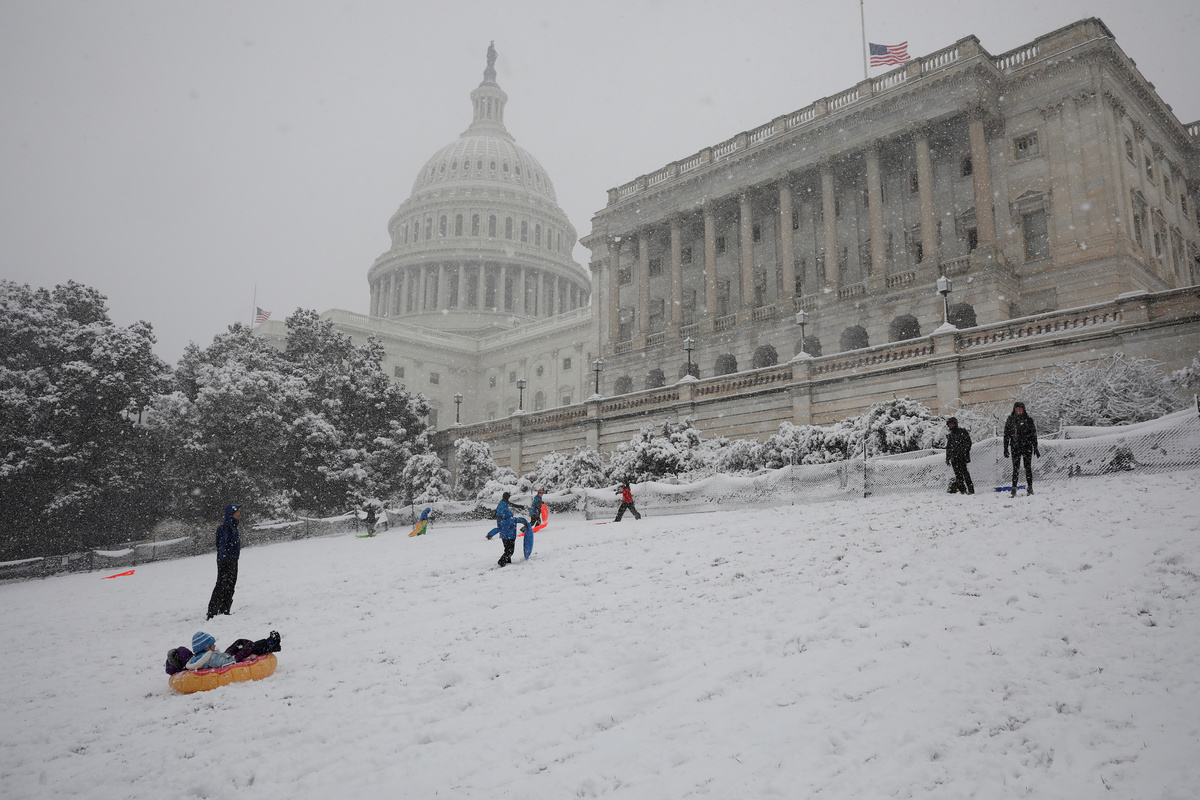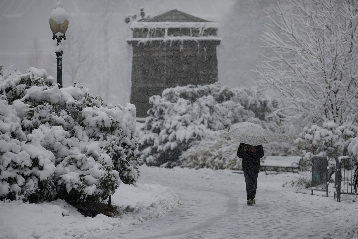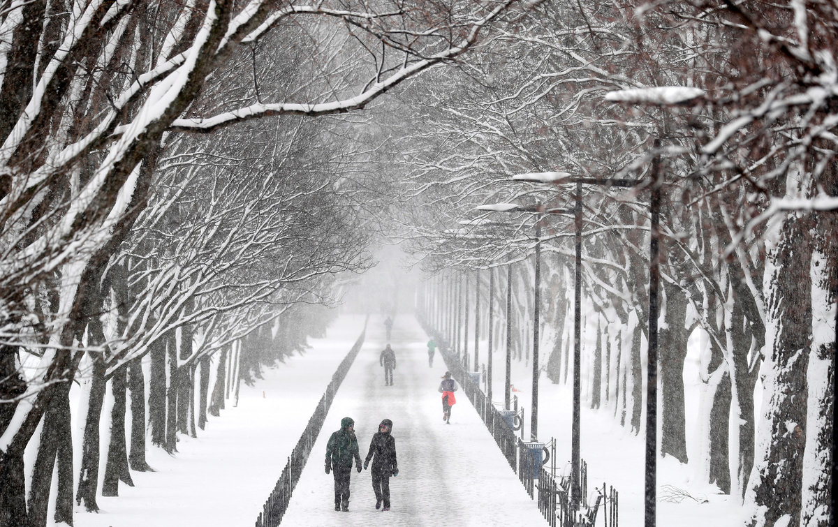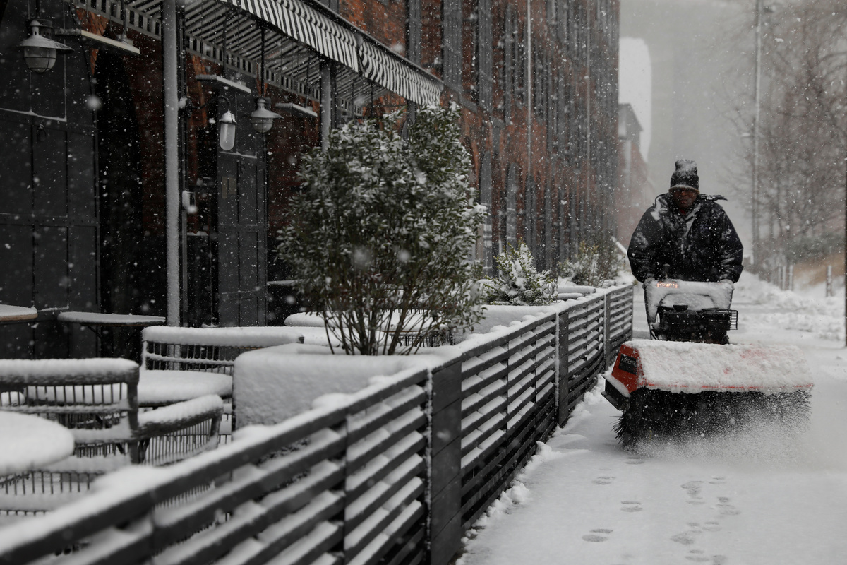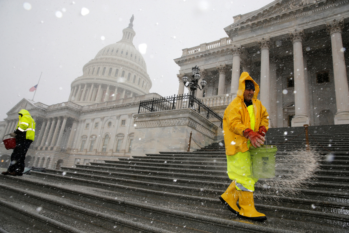 Pedestrians walk past a snow covered "Fearless Girl" sculpture during a late season nor'easter in New York, U.S., March 21, 2018. REUTERS/Lucas JacksonVisitors hold their umbrellas against the snow as they walk along the Vietnam Veterans Memorial on the National Mall in Washington, U.S., March 21, 2018. REUTERS/Kevin LamarquePeople make their way along the National Mall during a snowstorm in Washington, U.S., March 21, 2018. REUTERS/Kevin LamarqueSnow is cleared from steps leading up to the Lincoln Memorial during a snowstorm in Washington, U.S., March 21, 2018. REUTERS/Kevin LamarqueWorkers clean snow off a sidewalk in front of the Flatiron building during a late season nor'easter in New York, U.S., March 21, 2018. REUTERS/Lucas JacksonPeople brave the snow around the Washington Monument in Washington, U.S., March 21, 2018. REUTERS/Leah MillisA woman and child walk along the side of the National Mall in Washington, U.S., March 21, 2018. REUTERS/Leah MillisWorkers clear the steps of the House of Representatives on Capitol Hill in Washington, U.S., March 21, 2018. REUTERS/Aaron P. BernsteinA woman walks in the snow during a winter nor'easter storm in the Brooklyn borough of New York, U.S., March 21, 2018. REUTERS/Brendan McDermidPeople sled in the snow outside the U.S. Capitol in Washington, U.S., March 21, 2018. REUTERS/Aaron P. BernsteinA pedestrian walks through the snow outside the U.S. Capitol in Washington, U.S., March 21, 2018. REUTERS/Aaron P. BernsteinPedestrains walk through the snow outside the U.S. Capitol in Washington, U.S., March 21, 2018. REUTERS/Aaron P. BernsteinA man clears a sidewalk with a snowblower, during a nor'easter, near the Brooklyn Bridge Park in Brooklyn, New York, U.S., March 21, 2018. REUTERS/Shannon StapletonA man uses a snowblower to clear snow, during a nor'easter, near the Brooklyn Bridge Park in Brooklyn, New York, U.S., March 21, 2018. REUTERS/Shannon StapletonA U.S. Secret Service police officer stands watch as light snow falls in front of the White House in Washington, U.S. March 21, 2018. REUTERS/Jonathan ErnstA woman walks with an umbrella during a nor'easter at the Brooklyn Bridge Park in Brooklyn, New York, U.S., March 21, 2018. REUTERS/Shannon StapletonAn East River Ferry boat makes its way under the Brooklyn Bridge during a nor'easter in New York, U.S., March 21, 2018. REUTERS/Shannon StapletonA man walks his dog during a late season snow storm in New York, U.S., March 21, 2018. REUTERS/Lucas JacksonTourists gather and take pictures as light snow falls in front of the White House in Washington, U.S. March 21, 2018. REUTERS/Jonathan ErnstU.S. Secret Service dog Lappie stands watch on the plaza in front of the White House as a light snow falls in Washington, U.S. March 21, 2018. REUTERS/Jonathan ErnstWorkers spread salt on the steps of the U.S. Capitol as light snow falls in Washington, U.S. March 21, 2018. REUTERS/Jonathan ErnstA commuter waits to catch the train during a late season snow storm in New York, U.S., March 21, 2018. REUTERS/Lucas JacksonA pedestrian walks through a late season snow storm in New York, U.S., March 21, 2018. REUTERS/Lucas JacksonA pedestrian walks through a late season snow storm in New York, U.S., March 21, 2018. REUTERS/Lucas Jackson