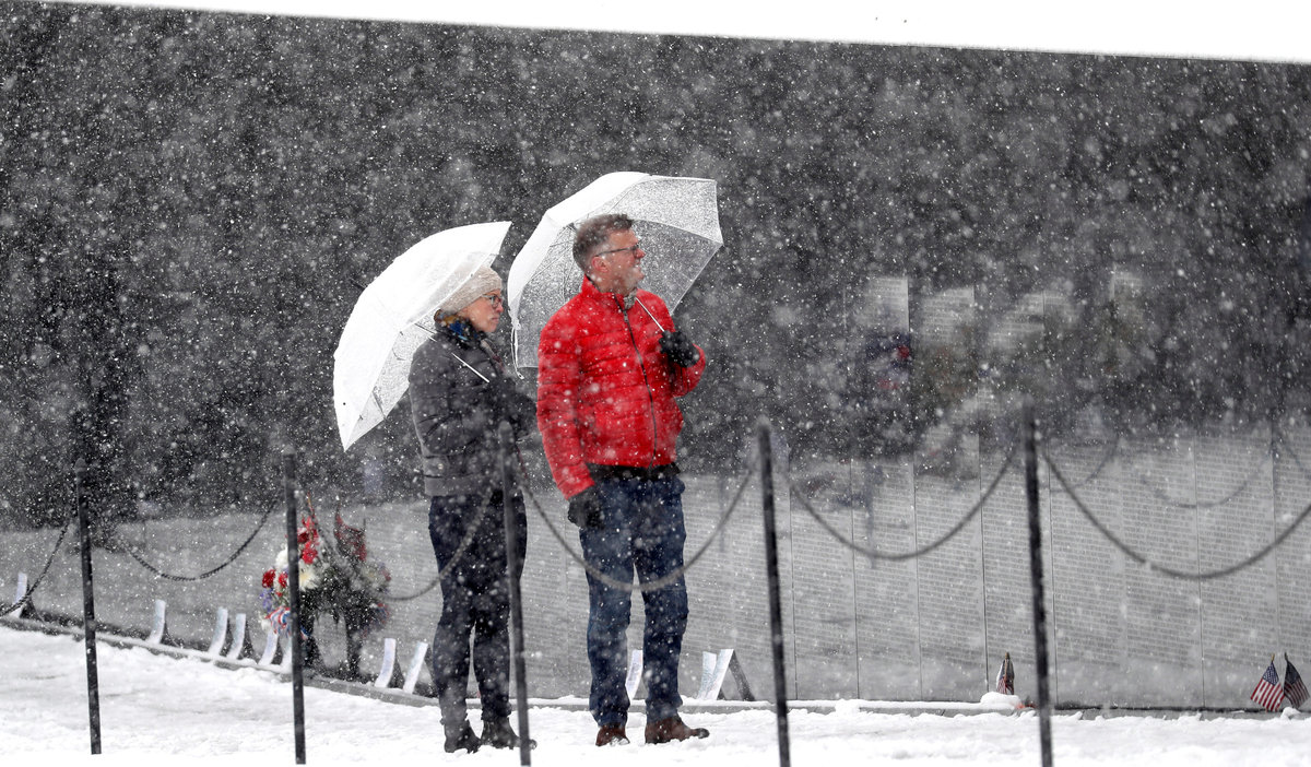 The National Weather Service said that farther inland, snow also blanketed parts of Ohio, Indiana and Kentucky.