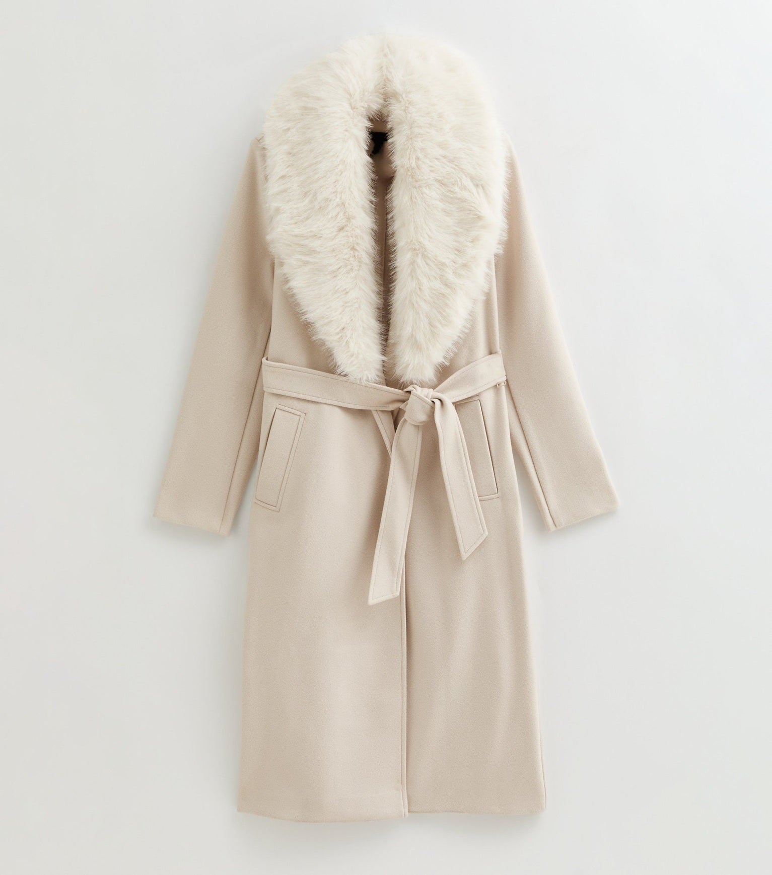 New Look Stone Faux Fur Collar Wrap Coat, £59.99 (was £79.99)