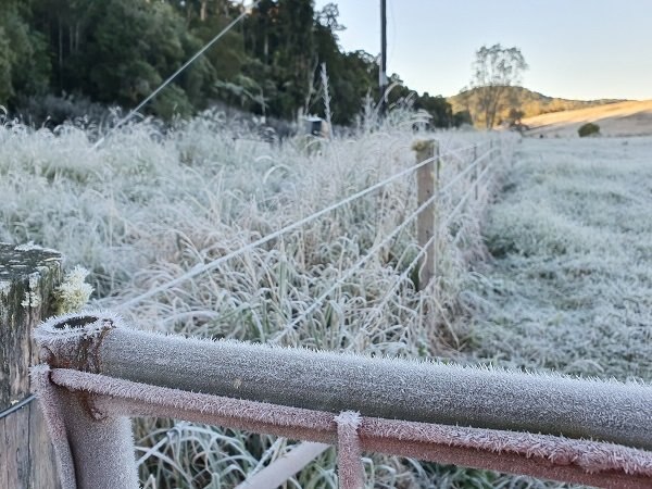 A Eungella beef producer recorded the temperature at -6 degrees Celsius on their property this morning, with ice forming on their dam.
