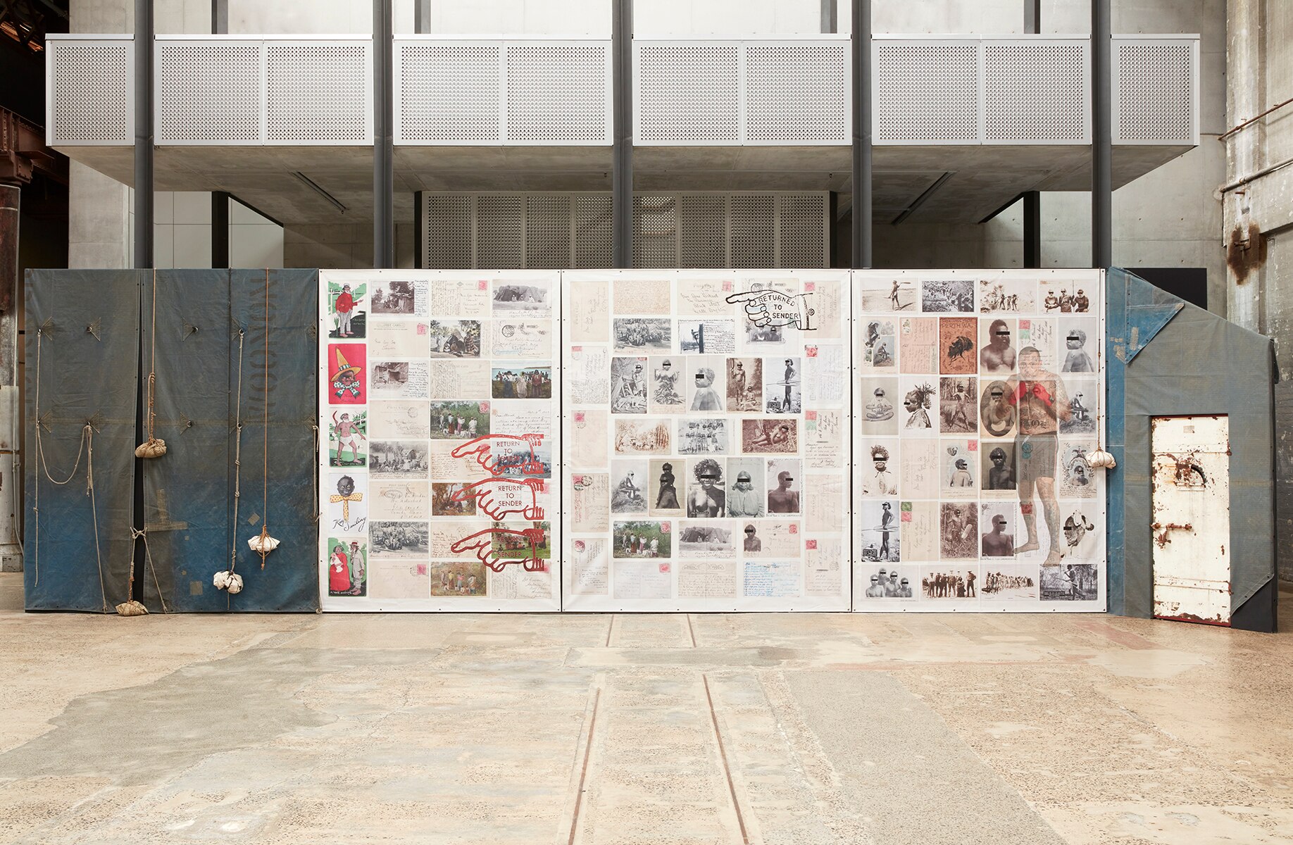 Scanned and enlarged, the postcards are now part of large-scale wall collages in her Carriageworks exhibition.