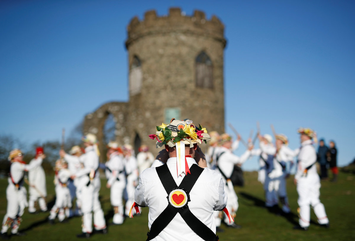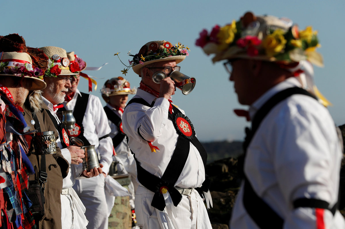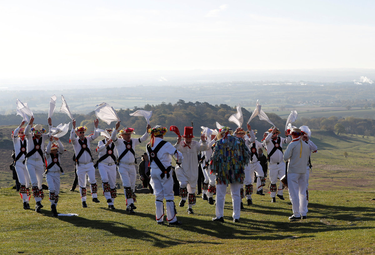 NEWTOWN LINFORD, England (Reuters) - Traditional English Morris Dancers with jingling bells on their shins and flower-bedecked hats rang in May Day with early morning jigs on Tuesday.