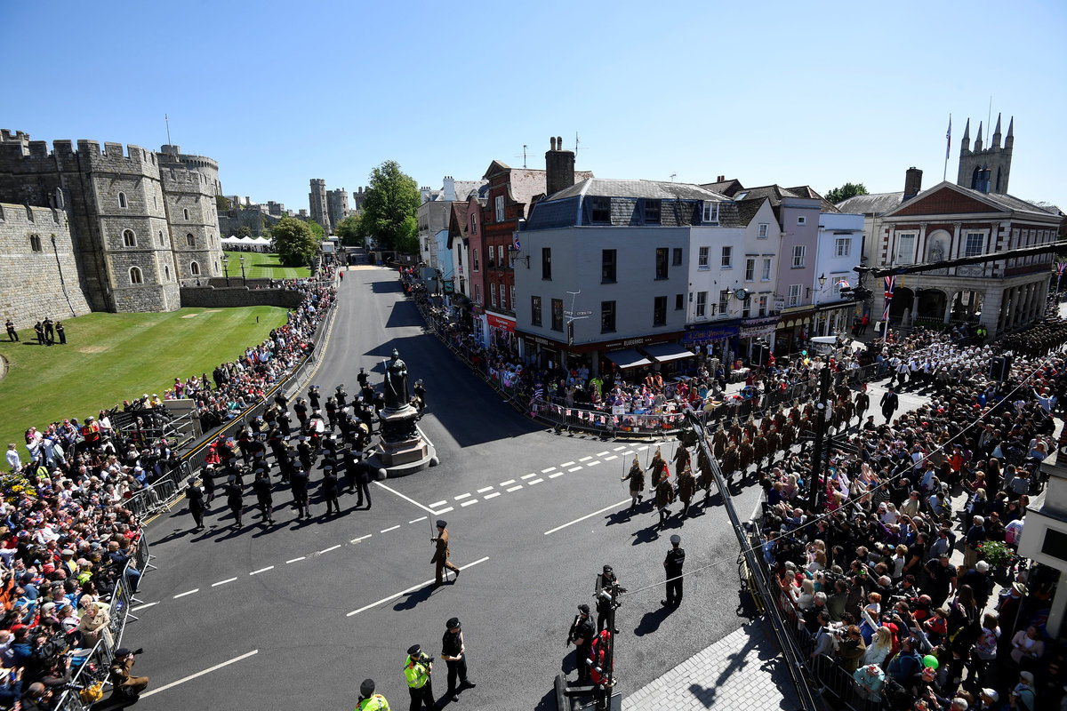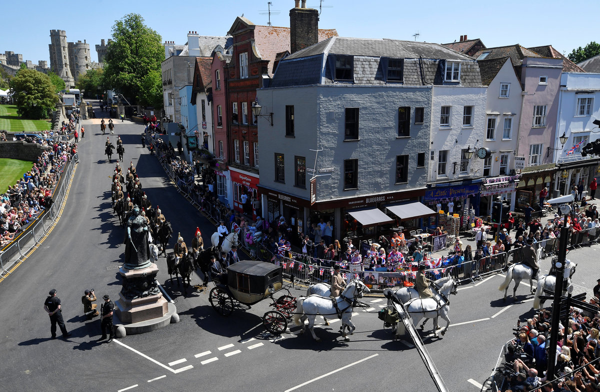 After the hour-long ceremony, the couple will take part in a procession through the town's ancient streets on a 19th Century Ascot Landau carriage pulled by four Windsor Grey horses.