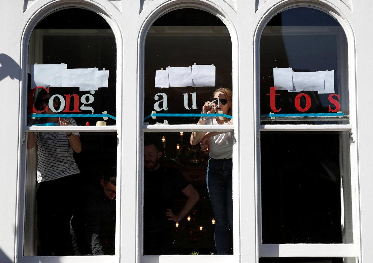 Sales of everything from flags and biscuits to tea towels emblazoned with the couple's pictures were brisk. A restaurant handed out free pizza to royal fans, some of whom have slept on the street since Tuesday to catch a glimpse of the newlyweds on Saturday.