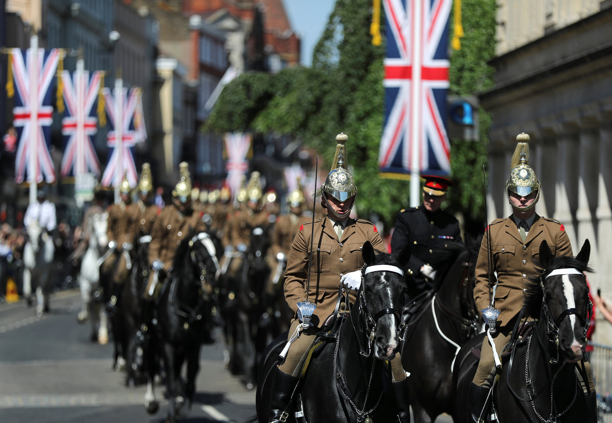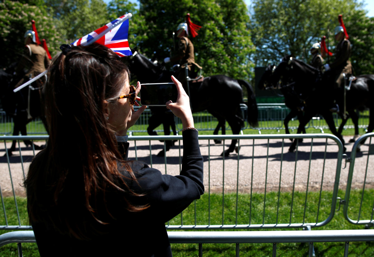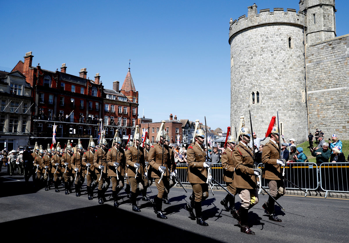 A large number of officers were present as crowds watched the troops who will accompany the newlyweds on the carriage procession perform a practice run on Thursday.