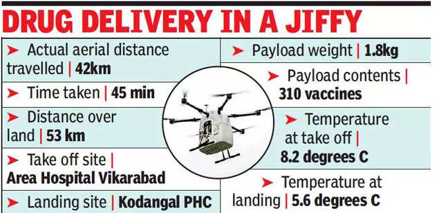 HYDERABAD: In what began as a small experiment to deliver medicines through drones to sometimes inaccessible areas, the Telangana government’s ambitious ‘Medicine from the sky’ project is all set to soar into newer areas.