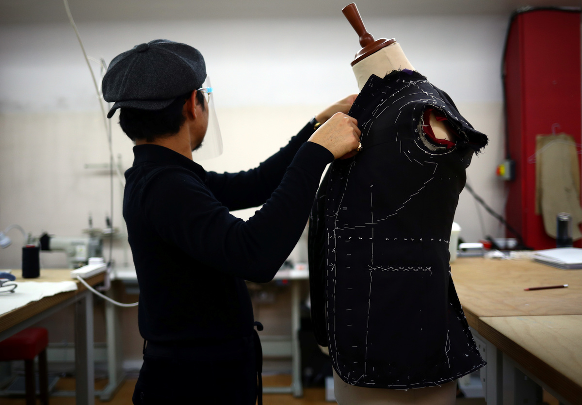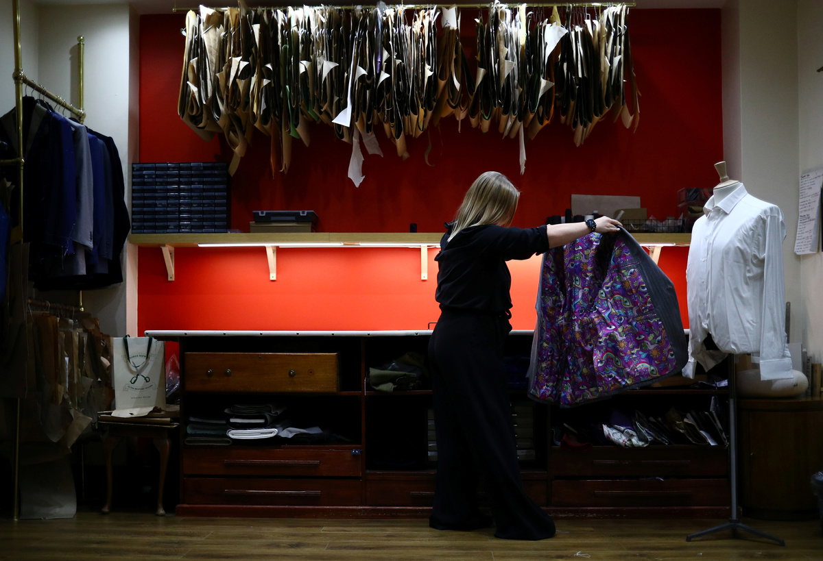 Tailoring rulers hang on the wall of the Saville Row Academy at Maurice Sedwell tailors on Saville Row, as the business reopens after an extended lockdown due to the spread of the coronavirus disease (COVID-19) in London, Britain, June 19, 2020. REUTERS/Hannah McKayGeneral view of Maurice Sedwell tailors on Saville Row, as the business reopens after an extended lockdown due to the spread of the coronavirus disease (COVID-19) in London, Britain, June 19, 2020. REUTERS/Hannah McKayTailor Judith Ekblom Jarrold makes final checks to a bespoke jacket for customer Neil Latchman in Maurice Sedwell tailors on Saville Row, as the business reopens after an extended lockdown due to the spread of the coronavirus disease (COVID-19) in London, Britain, June 19, 2020. REUTERS/Hannah McKayA bespoke tailored suit hangs on the wall of the Saville Row Academy at Maurice Sedwell tailors on Saville Row, as the business reopens after an extended lockdown due to the spread of the coronavirus disease (COVID-19) in London, Britain, June 19, 2020. REUTERS/Hannah McKayTailor Judith Ekblom Jarrold makes checks to a bespoke jacket inside Maurice Sedwell tailors on Saville Row, as the business reopens after an extended lockdown due to the spread of the coronavirus disease (COVID-19) in London, Britain, June 19, 2020. REUTERS/Hannah McKayA Saville Row Academy student makes adjustments to a bespoke jacket at Maurice Sedwell tailors on Saville Row, as the business reopens after an extended lockdown due to the spread of the coronavirus disease (COVID-19) in London, Britain, June 19, 2020. REUTERS/Hannah McKayA Saville Row Academy student makes adjustments to a bespoke jacket at Maurice Sedwell tailors on Saville Row, as the business reopens after an extended lockdown due to the spread of the coronavirus disease (COVID-19) in London, Britain, June 19, 2020. REUTERS/Hannah McKayTailor Judith Ekblom Jarrold takes measurements from customer Neil Latchman in Maurice Sedwell tailors on Saville Row, as the business reopens after an extended lockdown due to the spread of the coronavirus disease (COVID-19) in London, Britain, June 19, 2020. REUTERS/Hannah McKaySaville Row Academy student Sam Rithsak Seng makes adjustments to a bespoke jacket at Maurice Sedwell tailors on Saville Row, as the business reopens after an extended lockdown due to the spread of the coronavirus disease (COVID-19) in London, Britain, June 19, 2020. REUTERS/Hannah McKaySaville Row Academy student Sam Rithsak Seng makes adjustments to a bespoke jacket at Maurice Sedwell tailors on Saville Row, as the business reopens after an extended lockdown due to the spread of the coronavirus disease (COVID-19) in London, Britain, June 19, 2020. REUTERS/Hannah McKayFILE PHOTO: A tape measure is held by a tailor at Maurice Sedwell tailors on Saville Row, as the business reopens after an extended lockdown due to the spread of the coronavirus disease (COVID-19) in London, Britain, June 19, 2020. Picture taken June 19, 2020. REUTERS/Hannah McKay