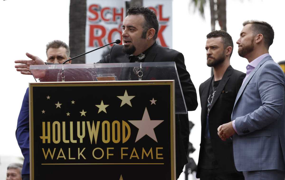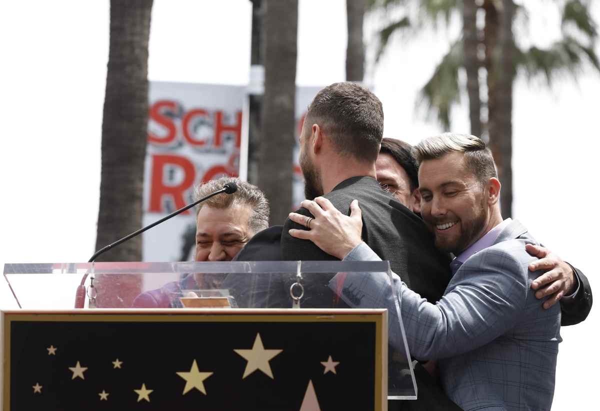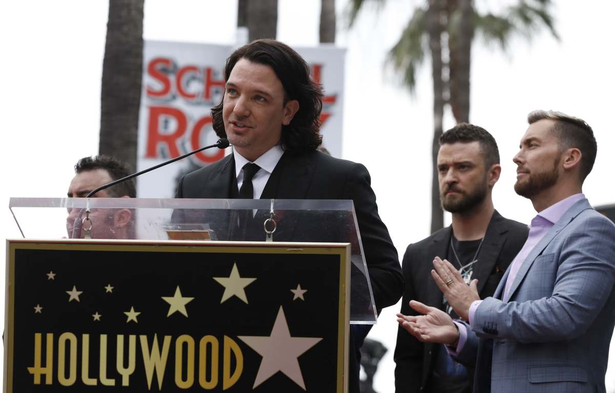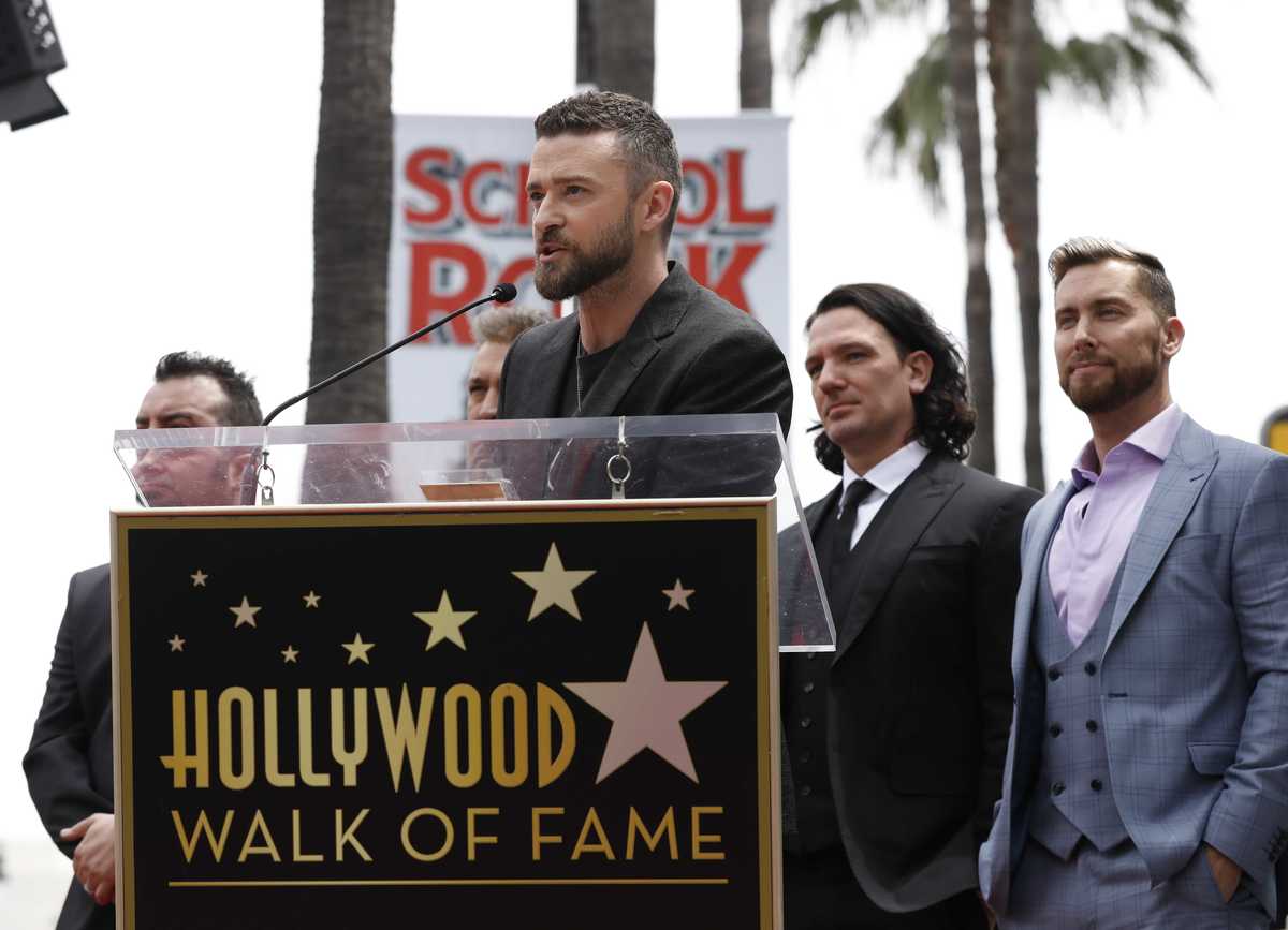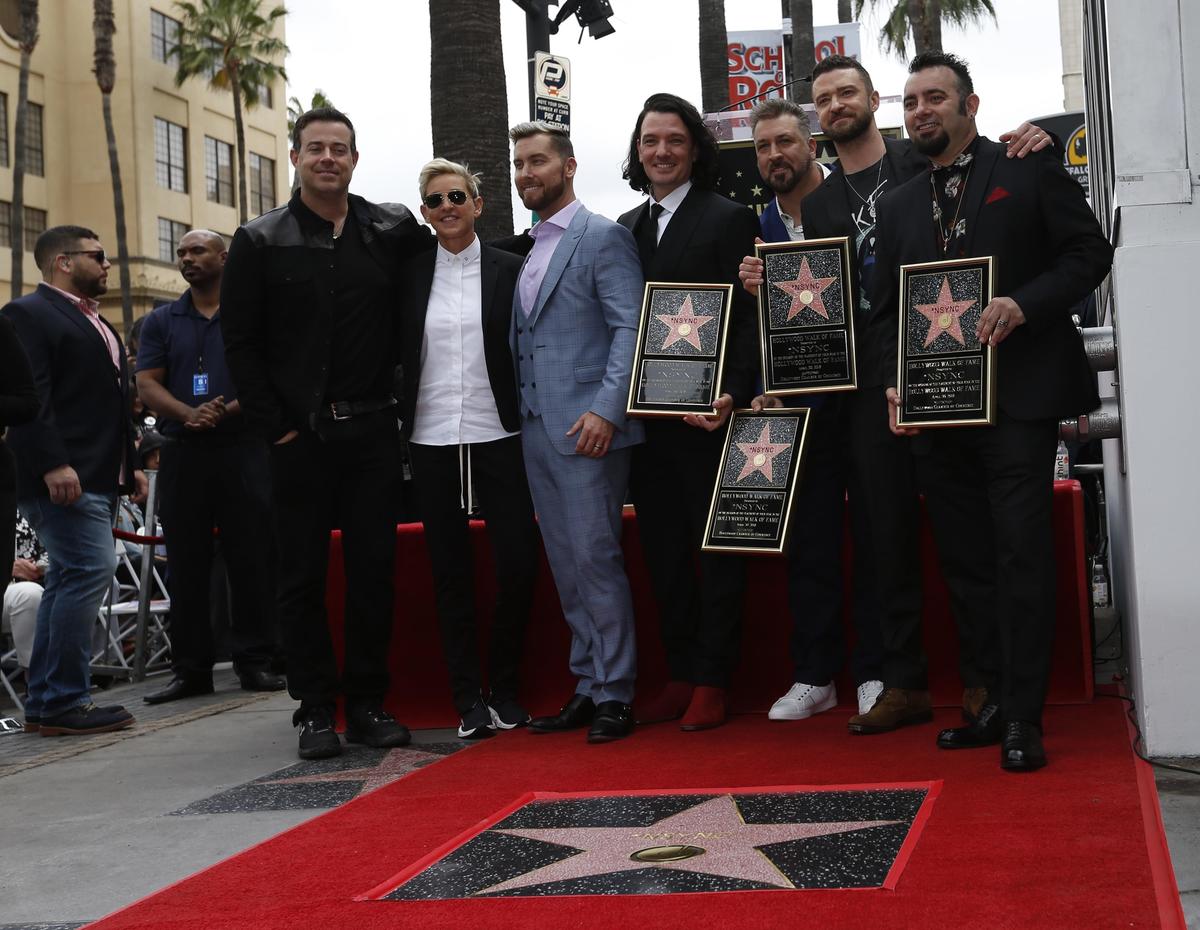 *NSYNC's star is pictured after its unveiling on the Hollywood Walk of Fame in Los Angeles, U.S., April 30, 2018. REUTERS/Mario AnzuoniMembers of the American boy band *NSYNC hug during the ceremony for the unveiling of their star on the Hollywood Walk of Fame in Los Angeles, U.S. April 30, 2018. REUTERS/Mario AnzuoniFans pose with a wax statue of Justin Timberlake during the ceremony for the unveiling of the star for American boy band *NSYNC on the Hollywood Walk of Fame in Los Angeles, U.S. April 30, 2018. REUTERS/Mario AnzuoniFans react as they wait for the unveiling ceremony of the star for American boy band *NSYNC on the Hollywood Walk of Fame in Los Angeles, California April 30, 2018. REUTERS/Mario AnzuoniCarson Daly speaks during the ceremony for the unveiling of the star for American boy band *NSYNC on the Hollywood Walk of Fame in Los Angeles, U.S. April 30, 2018. REUTERS/Mario AnzuoniJoey Fatone speaks during the ceremony for the unveiling of the star for American boy band *NSYNC on the Hollywood Walk of Fame in Los Angeles, U.S. April 30, 2018.Chris Kirkpatrick speaks during the ceremony for the unveiling of the star for American boy band *NSYNC on the Hollywood Walk of Fame in Los Angeles, U.S. April 30, 2018.Ellen Degeneres speaks during the ceremony for the unveiling of the star for American boy band *NSYNC on the Hollywood Walk of Fame in Los Angeles, U.S. April 30, 2018. REUTERS/Mario AnzuoniPeople look on during the unveiling ceremony of the star for American boy band *NSYNC on the Hollywood Walk of Fame in Los Angeles, U.S. April 30, 2018. REUTERS/Mario AnzuoniLance Bass speaks during the ceremony for the unveiling of the star for American boy band *NSYNC on the Hollywood Walk of Fame in Los Angeles, U.S. April 30, 2018.JC Chasez speaks during the ceremony for the unveiling of the star for American boy band *NSYNC on the Hollywood Walk of Fame in Los Angeles, U.S. April 30, 2018. REUTERS/Mario AnzuoniFans wait for the unveiling ceremony of the star for American boy band *NSYNC on the Hollywood Walk of Fame in Los Angeles, California April 30, 2018. REUTERS/Mario Anzuoni