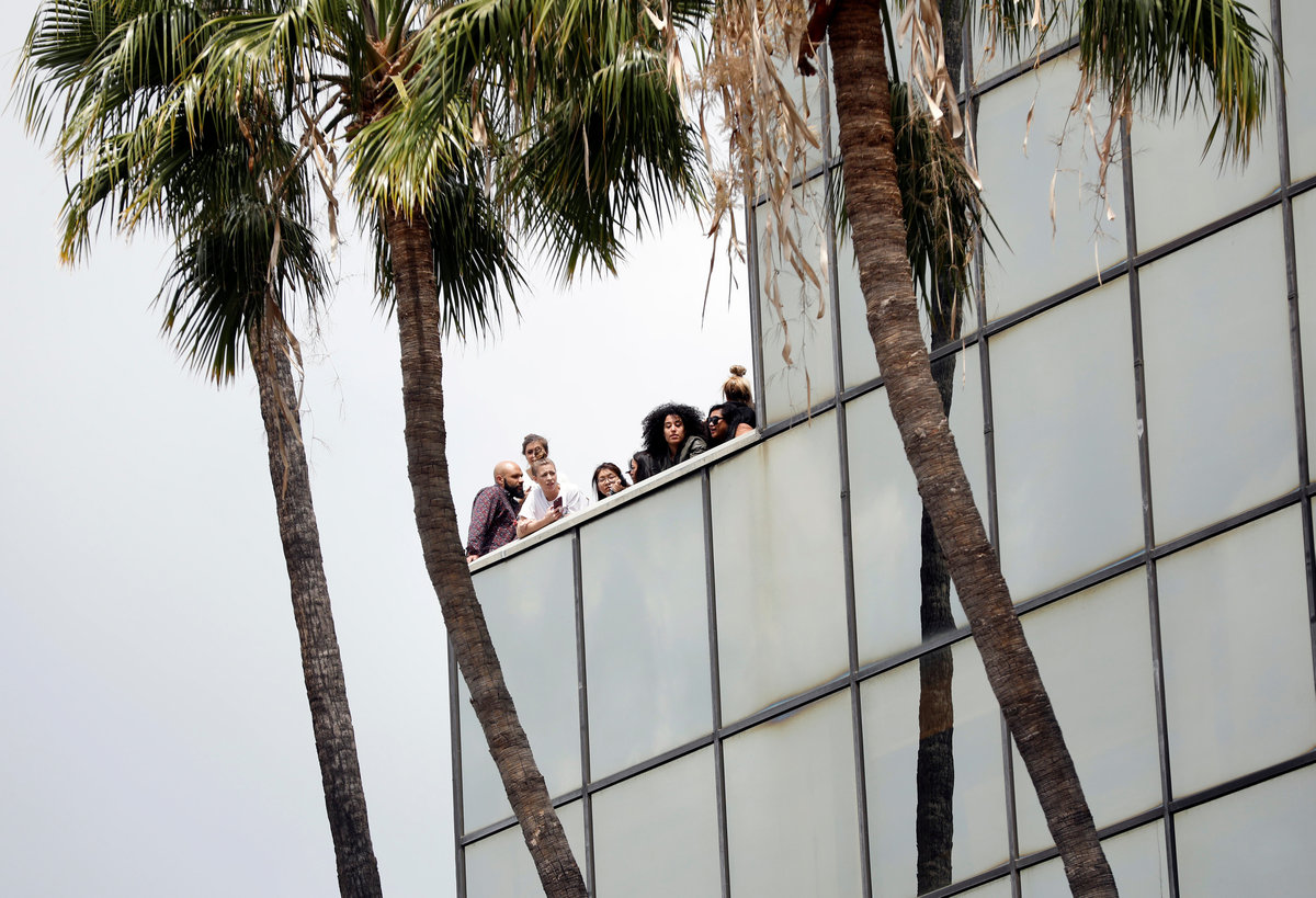 People look on as they wait for the unveiling ceremony of the star for American boy band *NSYNC on the Hollywood Walk of Fame in Los Angeles, U.S. April 30, 2018. REUTERS/Mario Anzuoni
