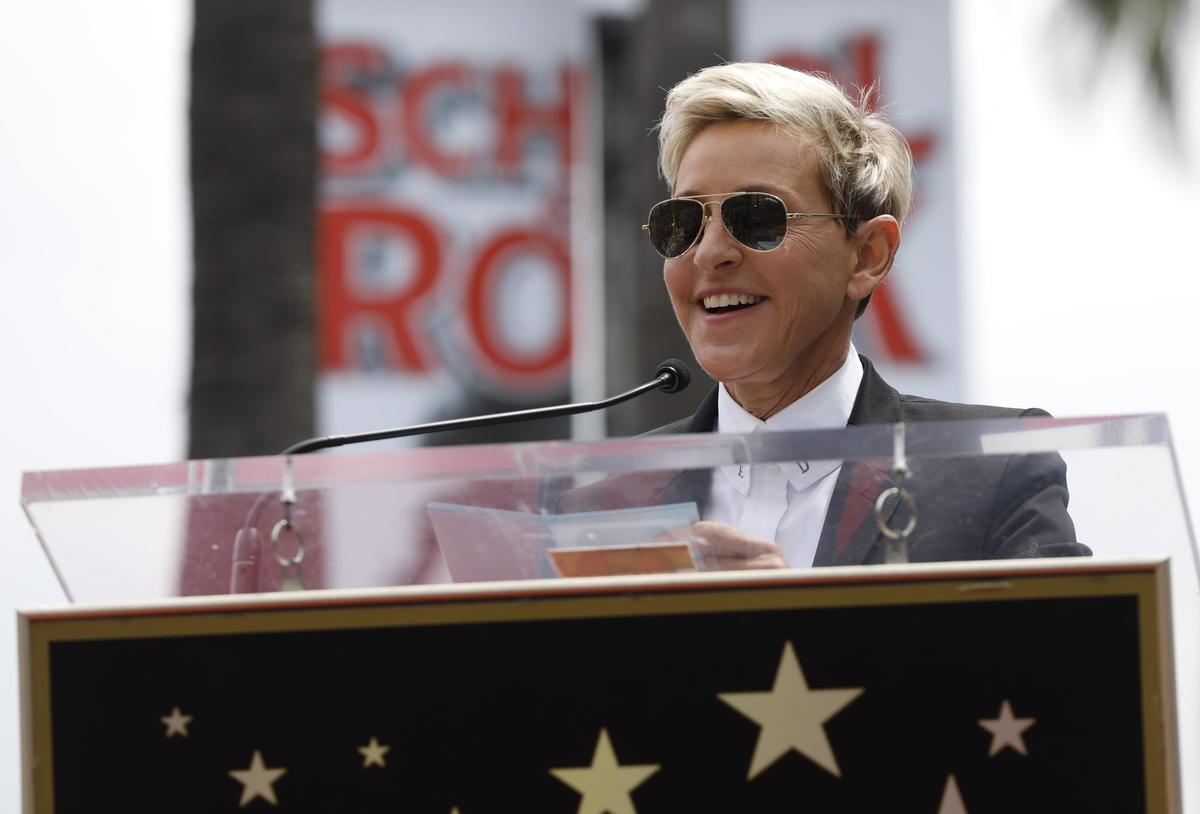 Ellen Degeneres and Carson Daly pose for pictures with the members of *NSYNC during the ceremony for the unveiling of the star for American boy band *NSYNC on the Hollywood Walk of Fame in Los Angeles, U.S. April 30, 2018. REUTERS/Mario Anzuoni