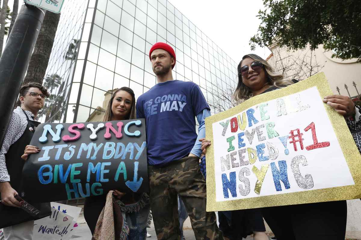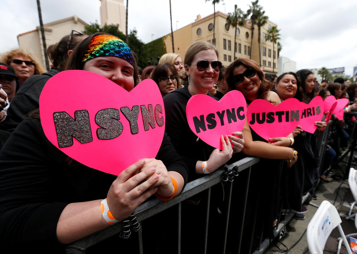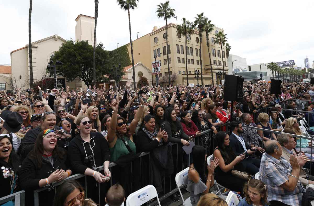 With fans aflutter, boy band 'NSync 'reunites' for Hollywood star