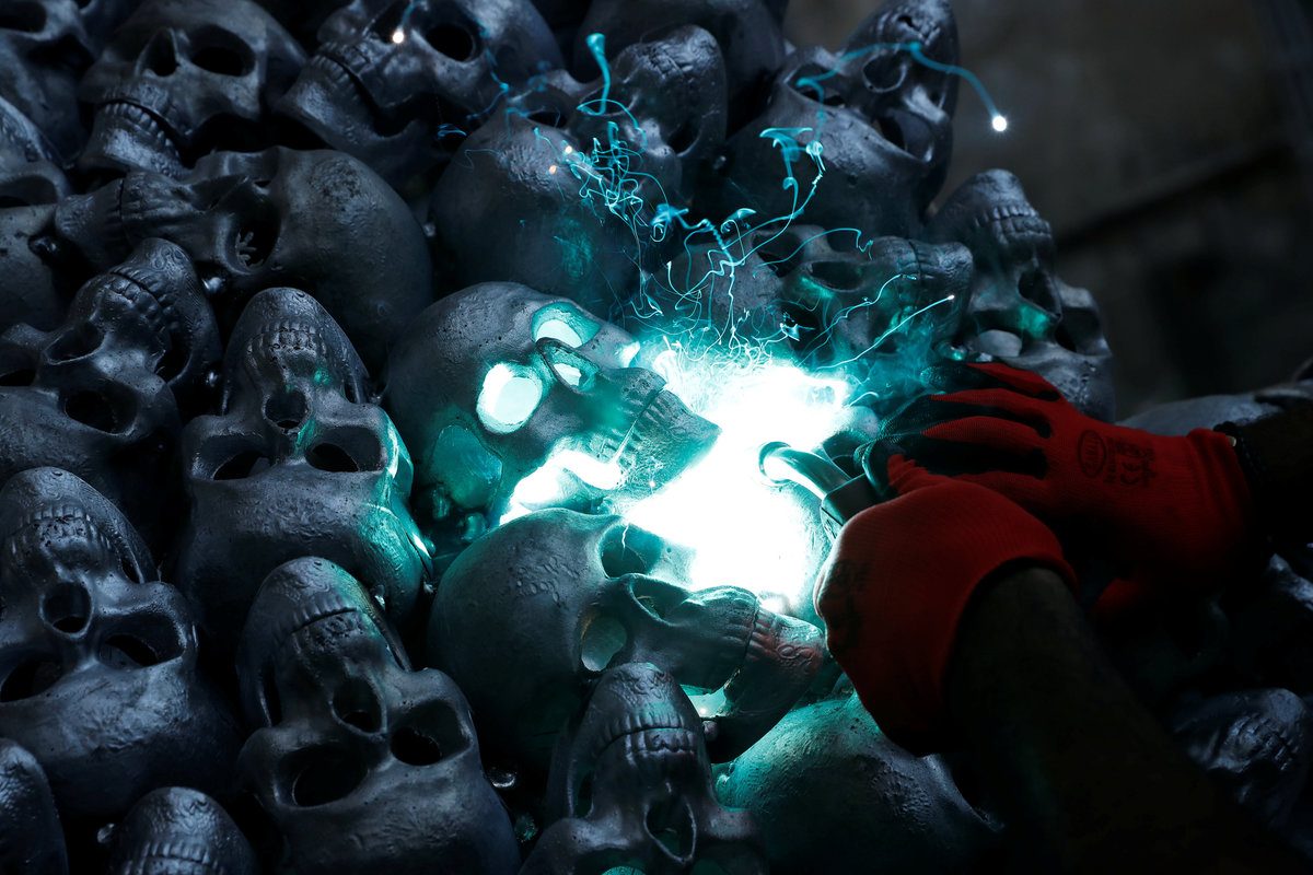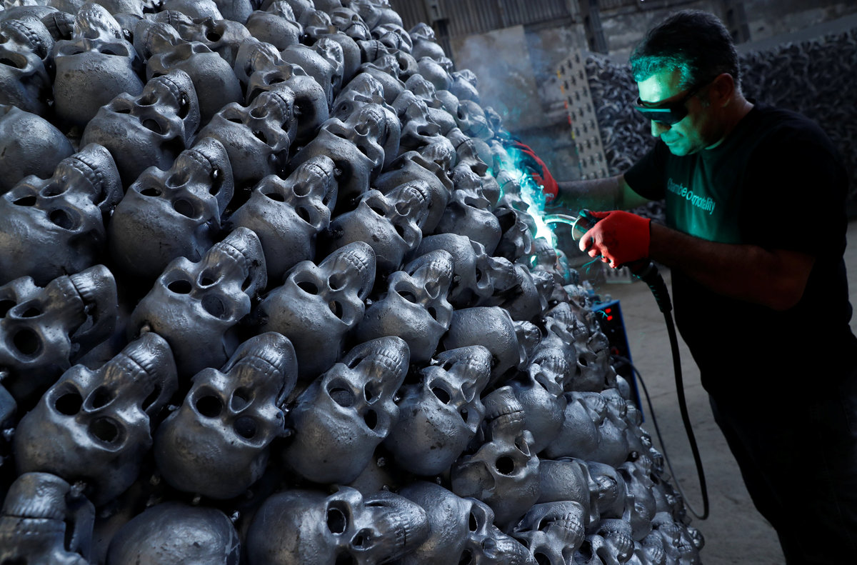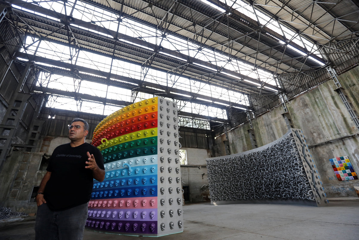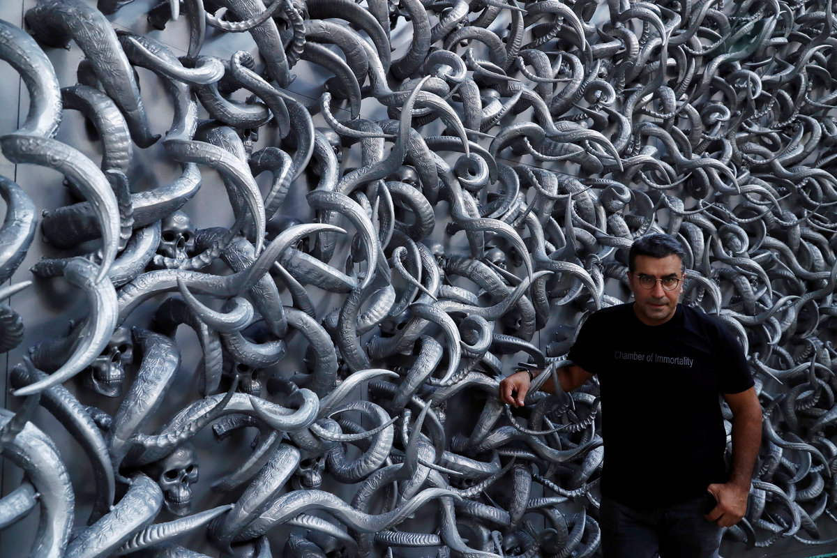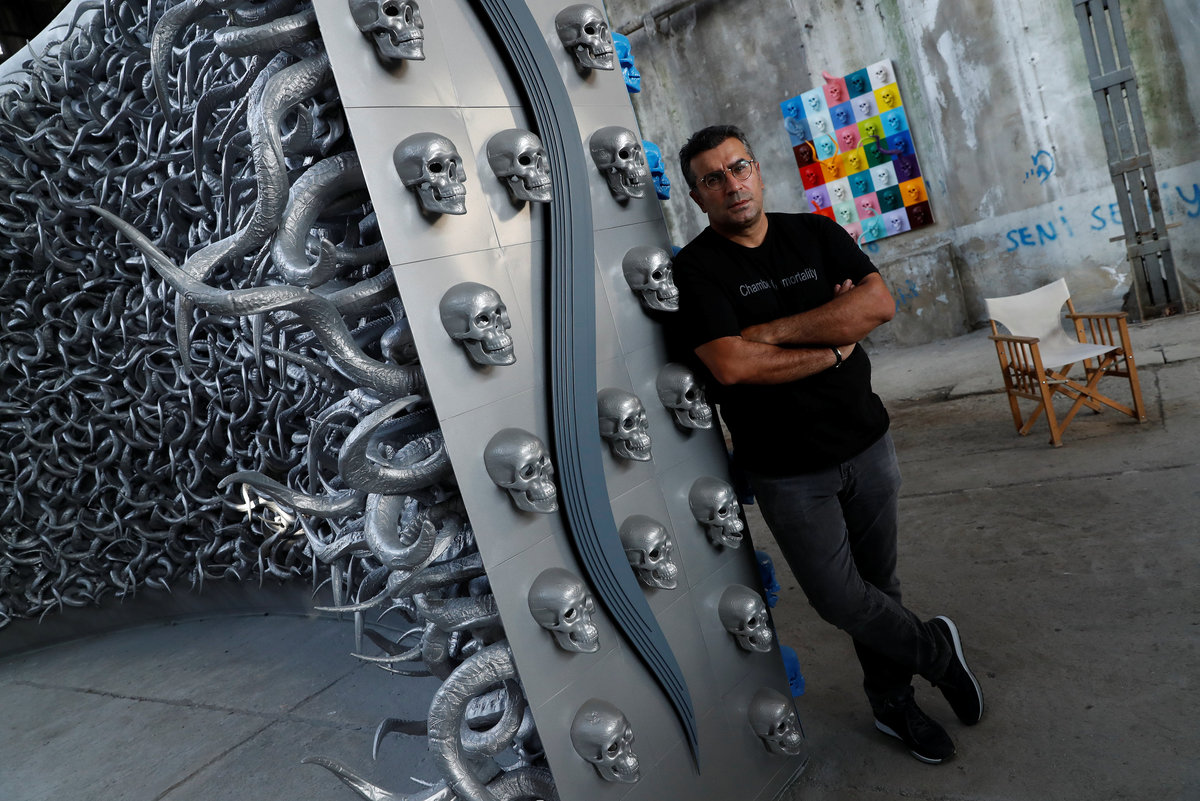 Turkish artist Ahmet Gunestekin poses next to his artwork "Chamber of Immortality" in Istanbul, Turkey September 5, 2018. Picture taken September 5, 2018. REUTERS/Murad Sezer Turkish artist Ahmet Gunestekin puts finishing touches to his artwork "Chamber of Immortality" in Istanbul, Turkey September 5, 2018. Picture taken September 5, 2018. REUTERS/Murad Sezer Turkish artist Ahmet Gunestekin poses next to his artwork "Chamber of Immortality" in Istanbul, Turkey September 5, 2018. Picture taken September 5, 2018. REUTERS/Murad Sezer Metal skulls, a part of Turkish artist Ahmet Gunestekin's artwork "Chamber of Immortality", is pictured in Istanbul, Turkey September 13, 2018. Picture taken September 13, 2018. REUTERS/Murad Sezer Turkish artist Ahmet Gunestekin puts finishing touches to his artwork "Chamber of Immortality" in Istanbul, Turkey September 5, 2018. Picture taken September 5, 2018. REUTERS/Murad Sezer Turkish artist Ahmet Gunestekin's artwork "Chamber of Immortality" is pictured in Istanbul, Turkey September 13, 2018. Picture taken September 13, 2018. REUTERS/Murad Sezer Turkish artist Ahmet Gunestekin poses next to his artwork "Chamber of Immortality" in Istanbul, Turkey September 5, 2018. Picture taken September 5, 2018. REUTERS/Murad Sezer