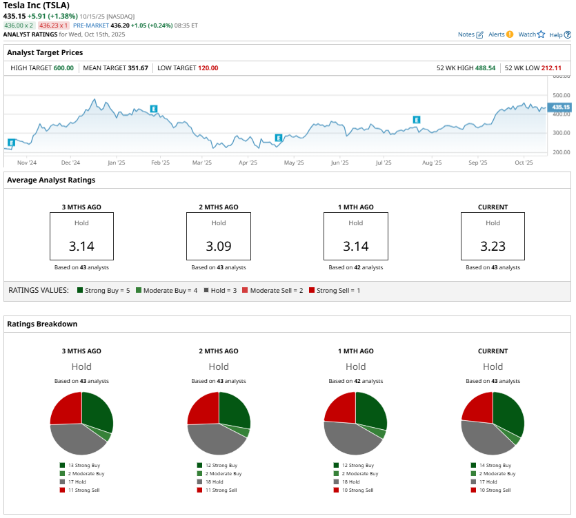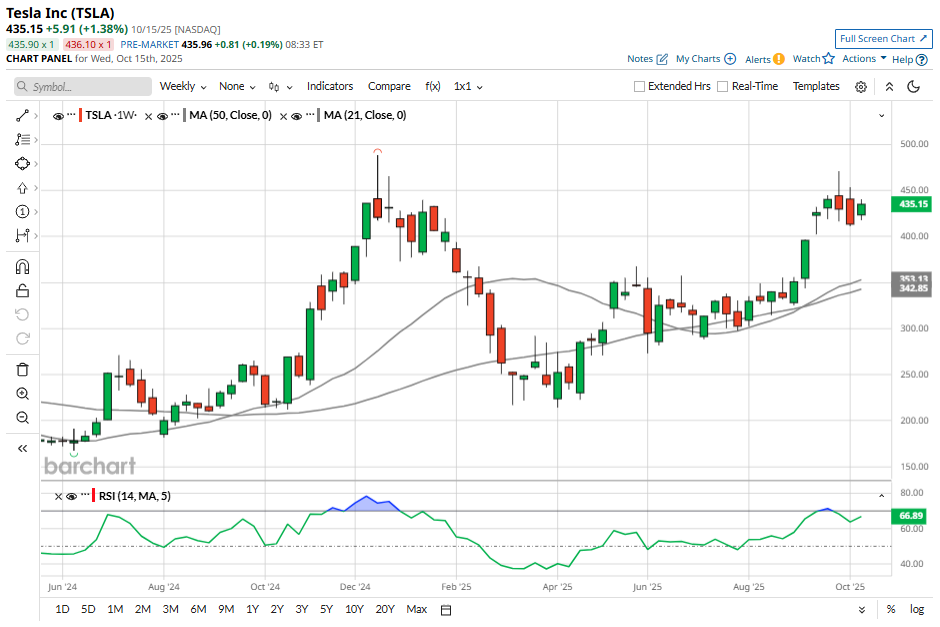 Tesla (TSLA) will announce its third quarter 2025 financials after the market closes on Wednesday, Oct. 22. Heading into the earnings, TSLA stock has been on an impressive run, climbing more than 35% over the past three months and soaring roughly 80% in the last six. The rally reflects renewed optimism around the electric vehicle (EV) leader’s performance and outlook.