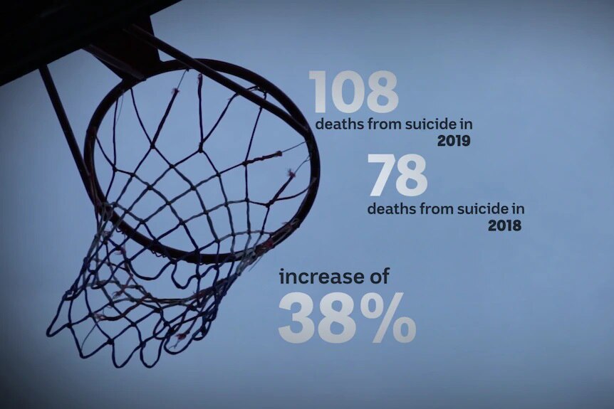 Tasmania has also seen a 38-per-cent increase in suicides — from 78 to 108 — between 2018-2019.