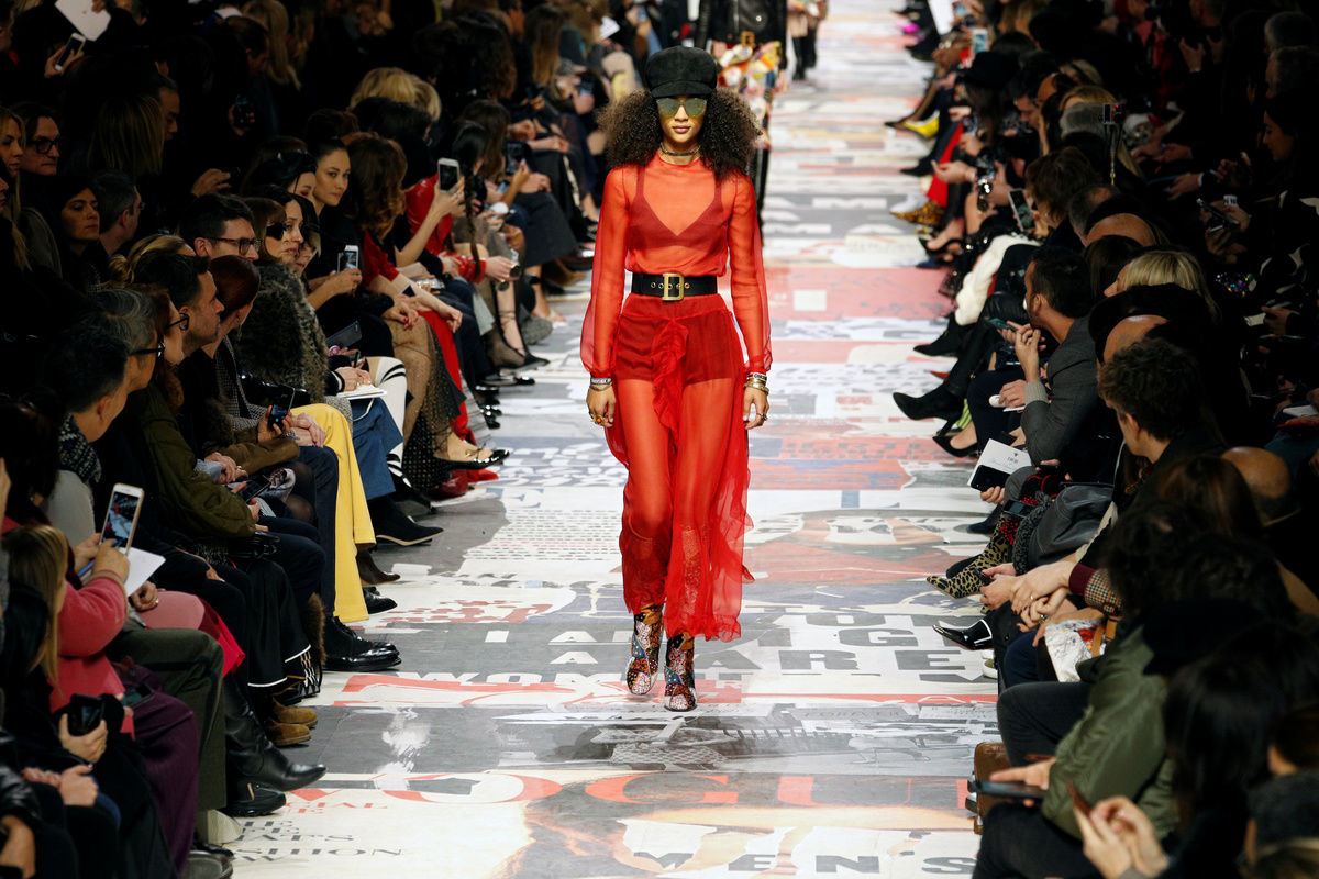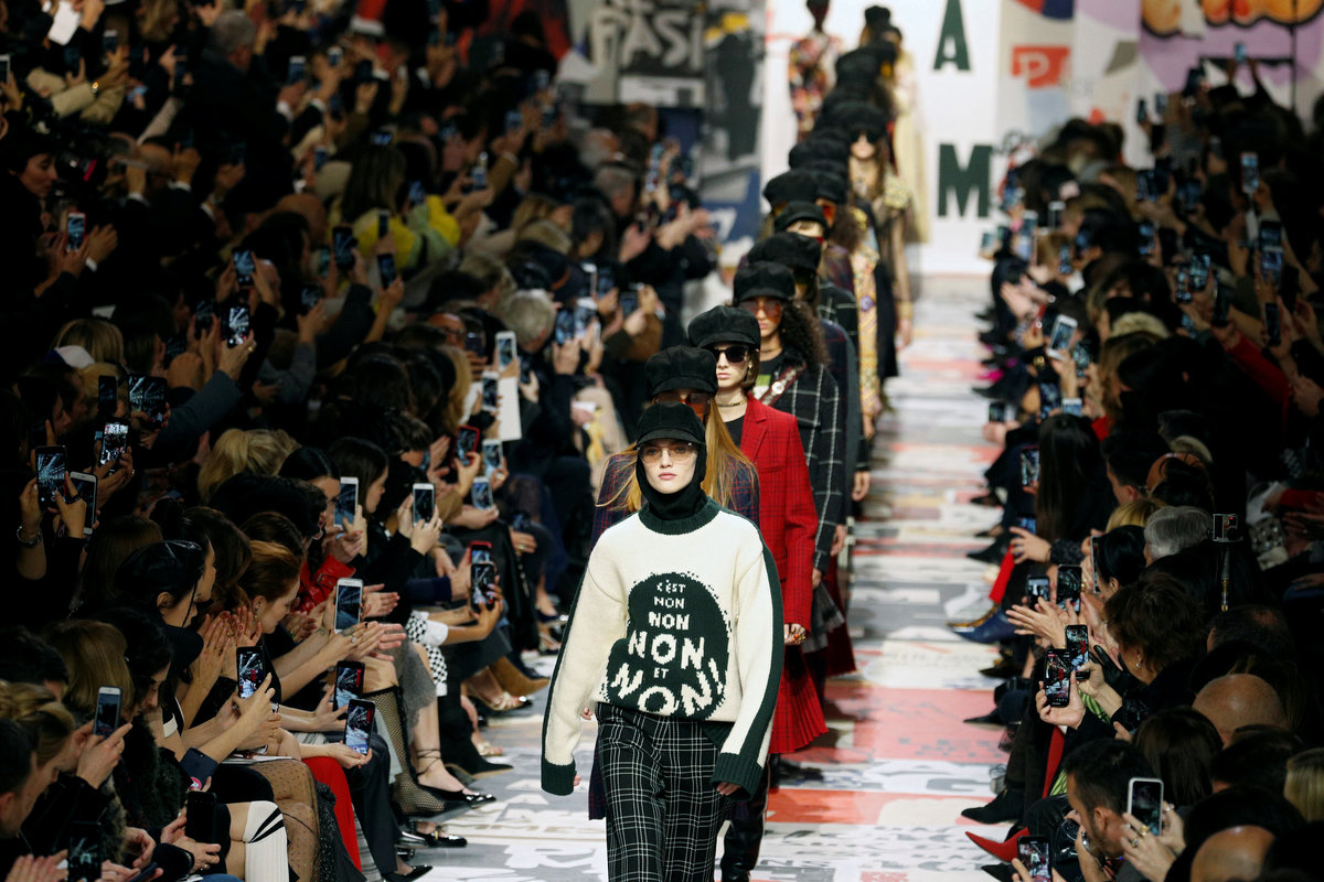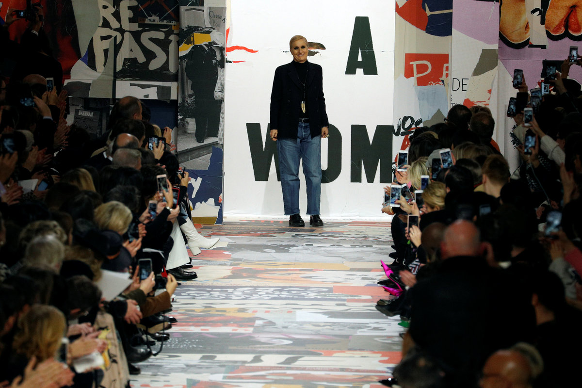 The show, on the first full day of Paris Fashion Week, was the latest offering by Dior designer Maria Grazia Chiuri, who has rejuvenated the storied label's look since 2016 and infused her collections with tributes to feminists and social change.