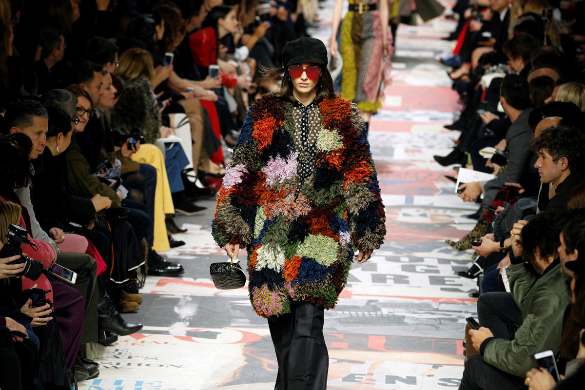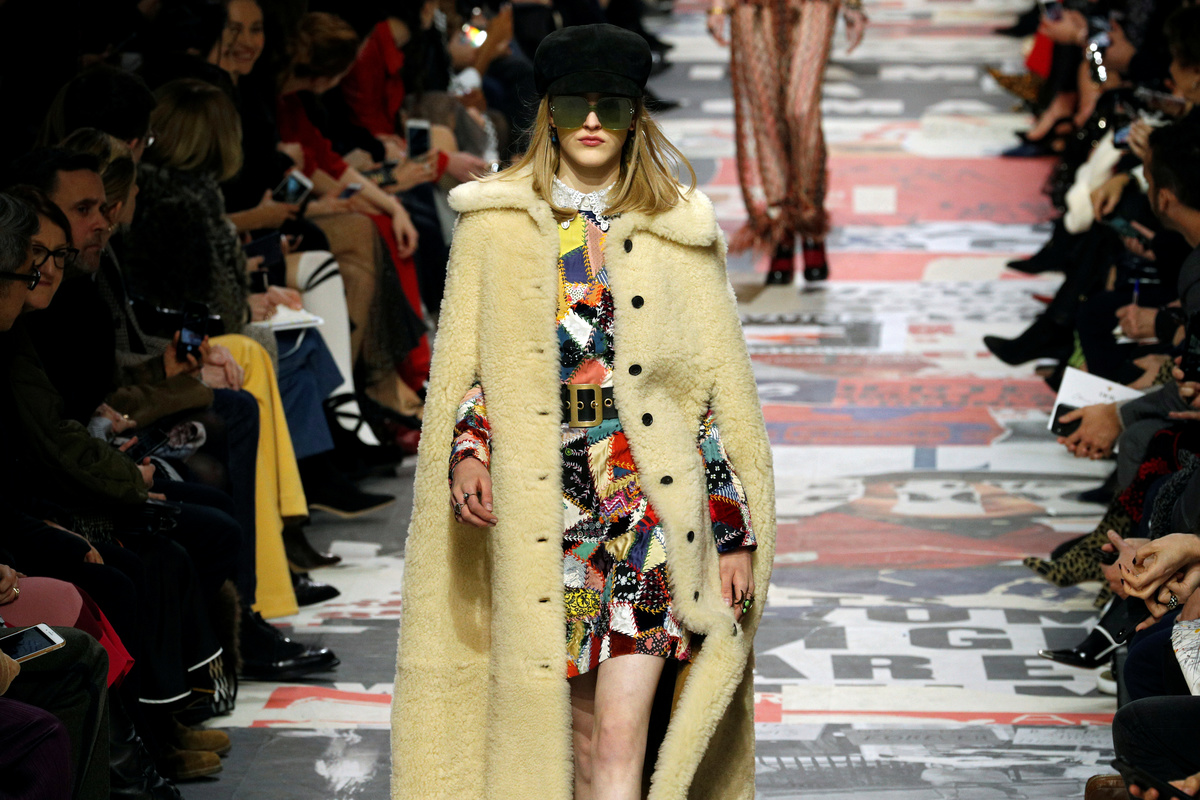 PARIS (Reuters) - Christian Dior paid homage to the youth movements of the 1960s on Tuesday with an explosion of color on the catwalk, as models in baker boy caps and vibrant patchwork designs walked through a set clad in slogans and ripped posters.