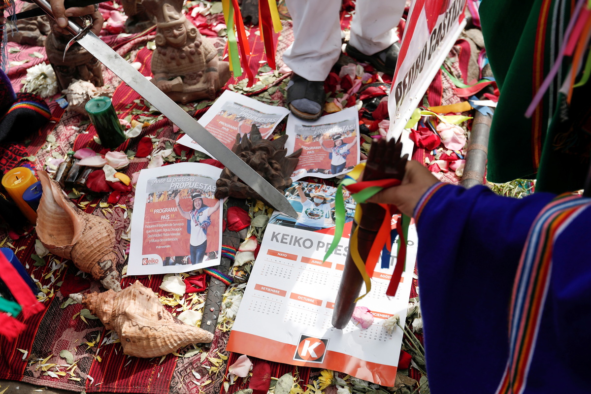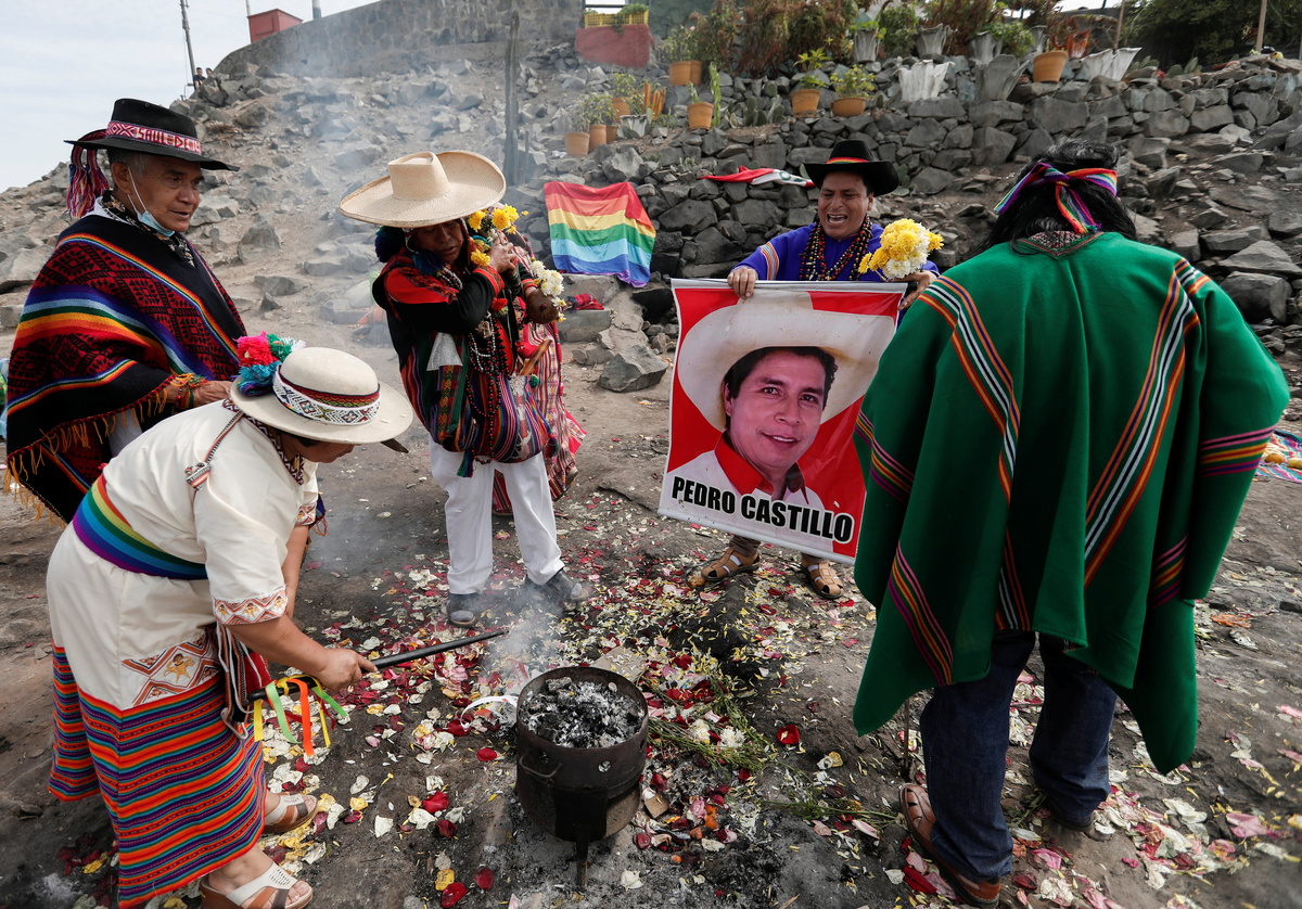 On a stony hillside in Lima, shamans burned incense and played musical instruments in colorful, traditional outfits to predict the winner from between socialist front-runner Pedro Castillo and conservative Keiko Fujimori.