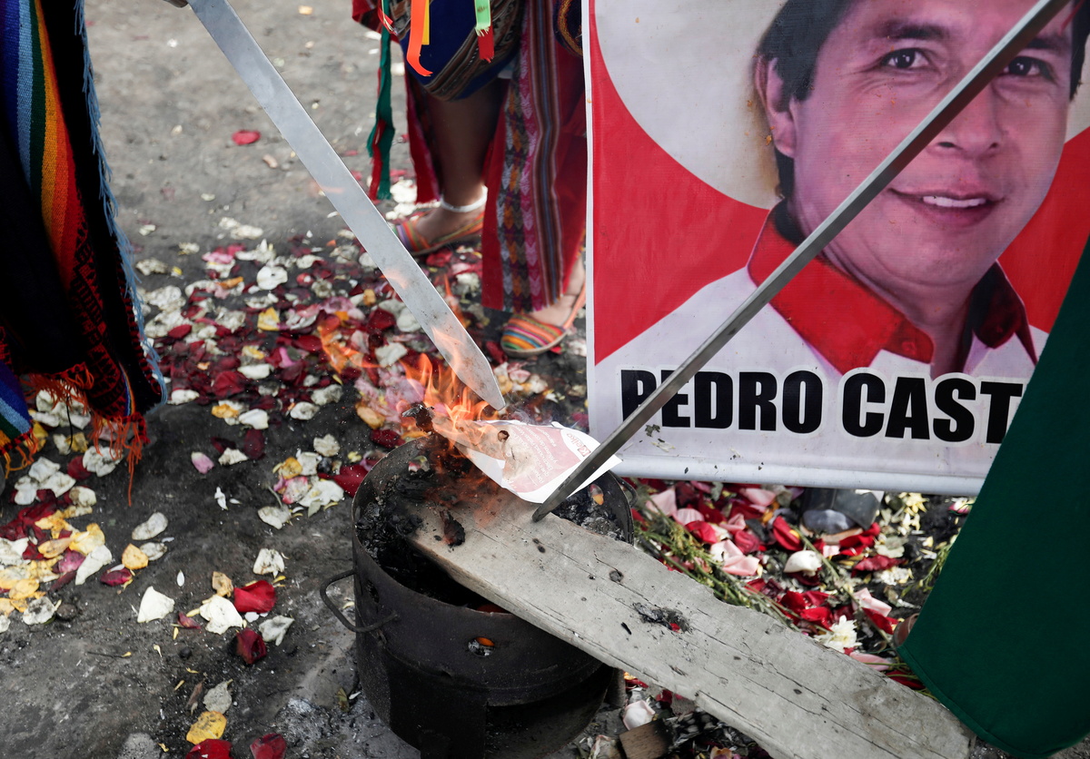 "We have come with incense with the four elements. ... We have come to raise up Mr. Pedro Castillo since many people do not want to see him or do not want him to govern Peru," said de Dios. "We have come to strengthen him with good winds."