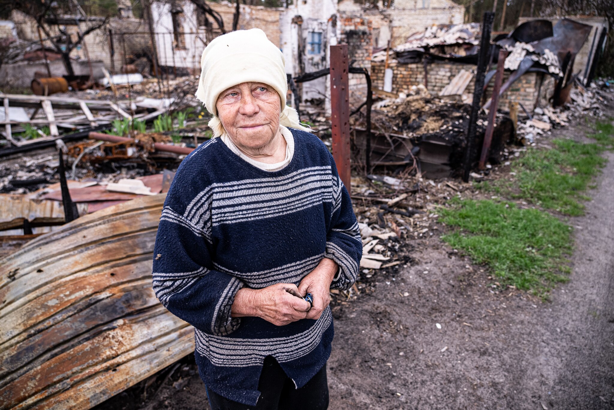 Even though her home is surrounded by blackened wreckage, she doesn't want to leave.