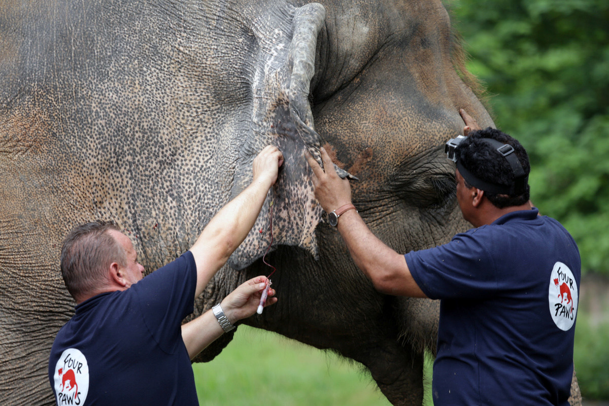 Four Paws experts fired darts with a sedative so they could give the sleepy animal a comprehensive check up.
