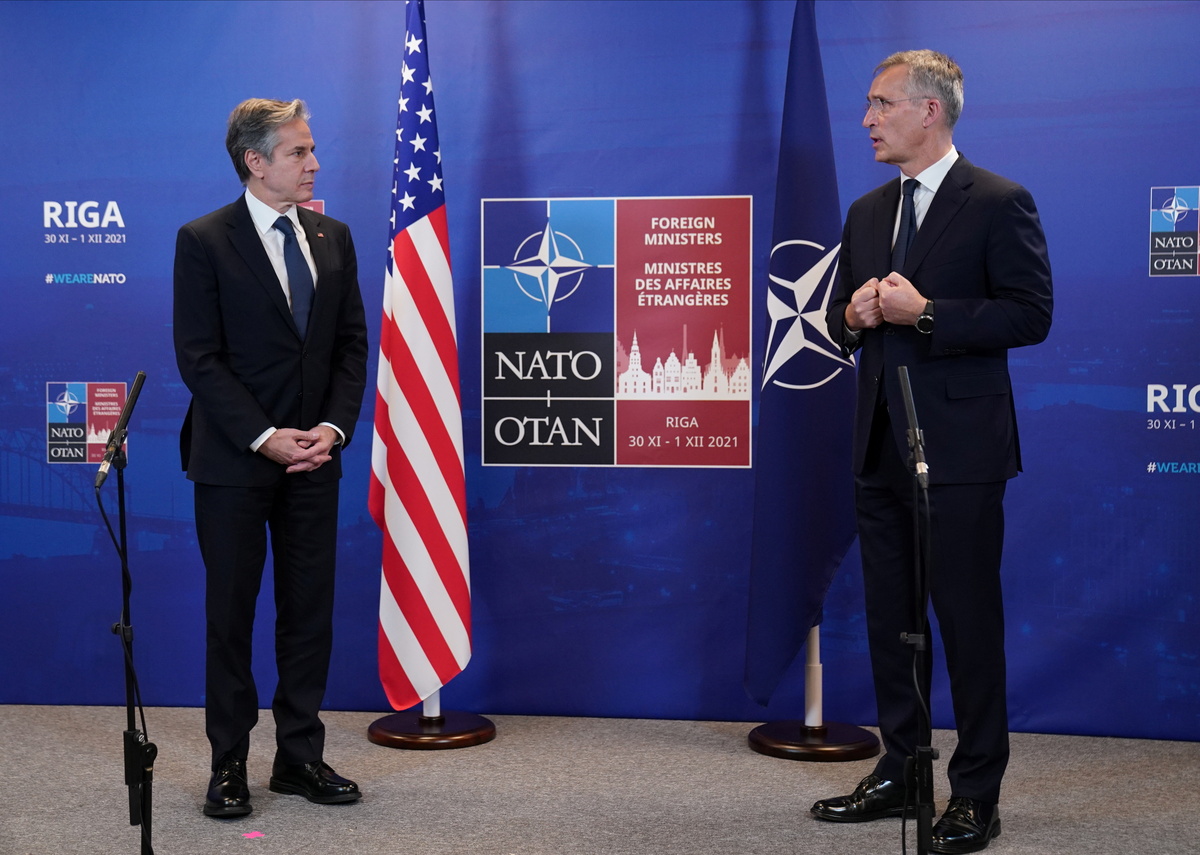 NATO foreign ministers began two days of talks in the Latvian capital Riga to debate what they say is the growing Russian threat, with Blinken due to brief his 29 alliance counterparts on Washington's intelligence assessment.