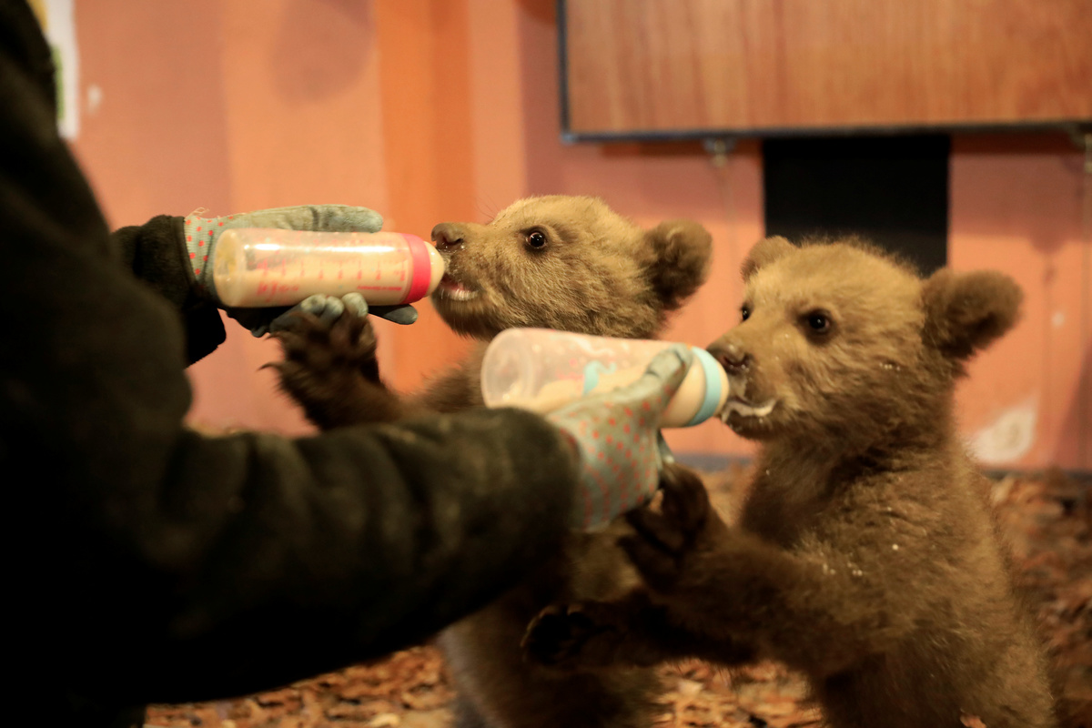 NYMFAIO, Greece (Reuters) - Just four months old, bear cubs Bradley and Cooper are still bottle-fed but they will soon have to forage into the Greek forest if they are to eat on their own.