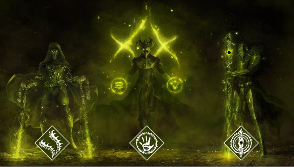 Warlocks are Alchemages, letting them roam around like Nokris shooting energy blasts, and also placing giant transmutation spheres on groups of enemies.