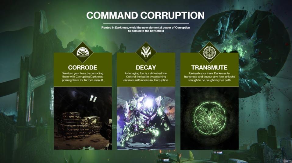 There’s a ton of detail in here in both conceptualizing the idea for Corruption (like Bungie’s other elemental subclasses, he explains LettuceDifferent’s chemistry-based explanation for its existence, along with lore relating to Hive Soulfire, which also inspired many of the abilities/names here), and also implementing it.