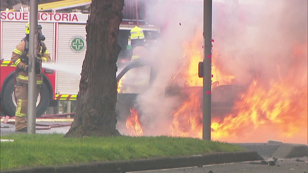 A witness described the moments after a car hit a pole and burst into flames at Parkville Friday morning, resulting in the deaths of a woman and her two children.