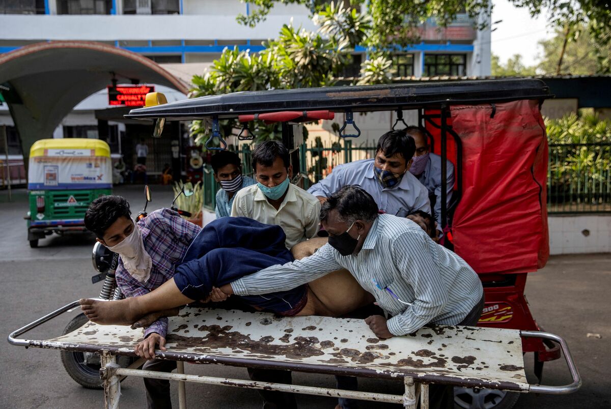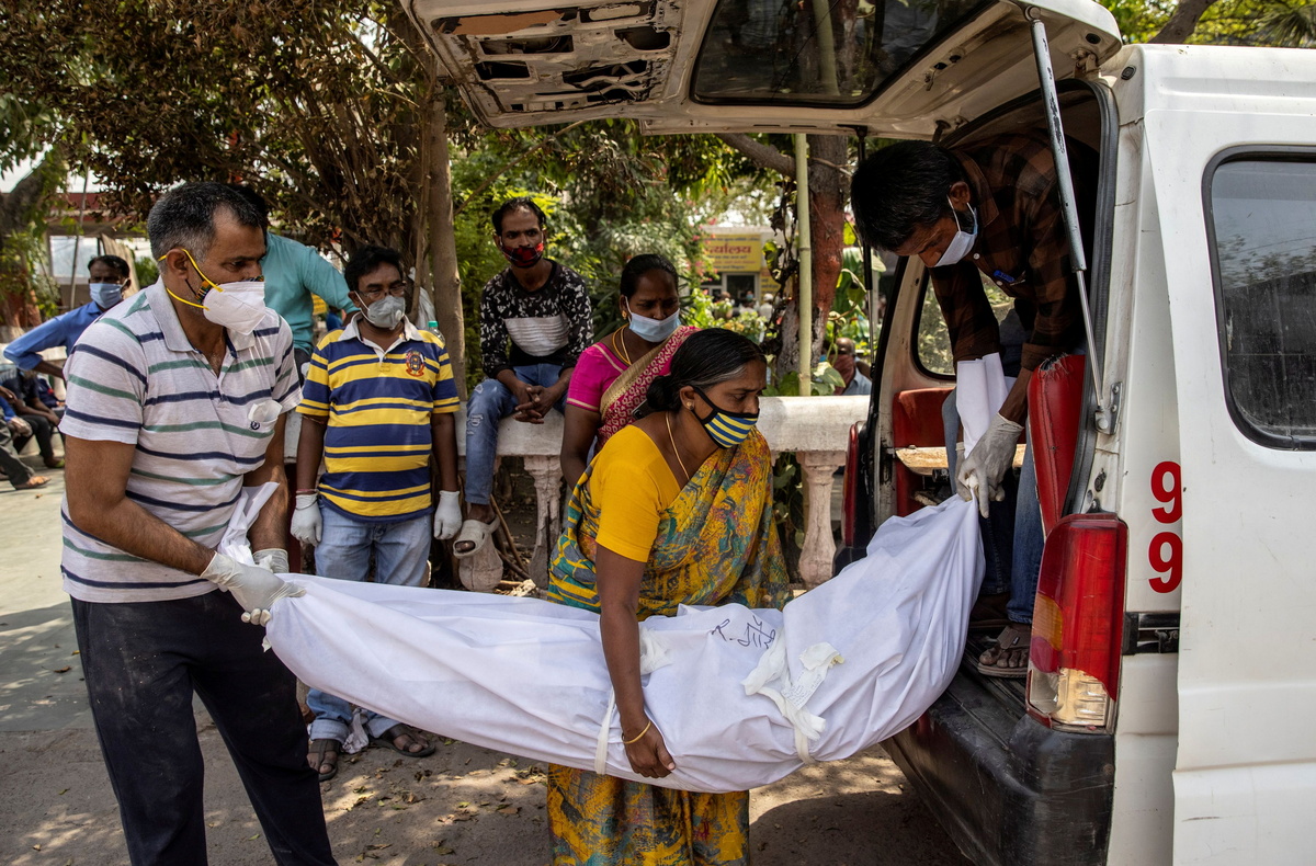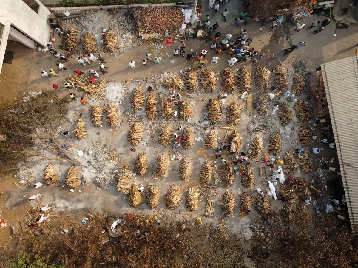 Family members mourn after Shayam Narayan is declared dead outside the coronavirus disease (COVID-19) casualty ward, at Guru Teg Bahadur hospital, amidst the spread of the disease in New Delhi, India, April 23, 2021. REUTERS/Danish Siddiqui/File Photo A medical worker tends to a patient suffering from the coronavirus disease (COVID-19), inside the ICU ward at Holy Family Hospital in New Delhi, India, April 29, 2021. REUTERS/Danish Siddiqui/File Photo A patient suffering from the coronavirus disease (COVID-19) receives treatment inside the emergency ward at Holy Family hospital in New Delhi, India, April 29, 2021. REUTERS/Danish Siddiqui/File Photo People suffering from the coronavirus disease (COVID-19) are treated inside an overcrowded casualty ward at a hospital in New Delhi, India, May 1, 2021. REUTERS/Danish Siddiqui/File Photo Roshan Lal, 48, a villager with a breathing difficulty rests in a cot as he receives treatment at a makeshift open-air clinic, amidst the spread of the coronavirus disease (COVID-19), in Mewla Gopalgarh village, in Jewar district, in the northern state of Uttar Pradesh, India, May 16, 2021. REUTERS/Danish Siddiqui/File Photo Patients receive treatment inside a COVID-19 ward of a government-run hospital, amidst the coronavirus disease (COVID-19) pandemic, in Bijnor district, Uttar Pradesh, India, May 11, 2021. REUTERS/Danish Siddiqui/File Photo A man stands next to the body of his wife, who died due to breathing difficulties, inside an emergency ward of a government-run hospital, amidst the coronavirus disease (COVID-19) pandemic, in Bijnor, Uttar Pradesh, India, May 11, 2021. REUTERS/Danish Siddiqui/File Photo Relatives carry the body of a person, who died from complications related to the coronavirus disease (COVID-19), for cremation at a crematorium ground in New Delhi, India, April 28, 2021. REUTERS/Danish Siddiqui/File Photo People bury the body of a man, who died from complications related to the coronavirus disease (COVID-19), at a graveyard in New Delhi, India, April 16, 2021. REUTERS/Danish Siddiqui/File Photo Relatives prepare to cremate the body of a person who died from complications related to the coronavirus disease (COVID-19), at a crematorium ground in New Delhi, India, April 28, 2021. REUTERS/Danish Siddiqui/File Photo Men wearing protective suits stand next to the body of their relative, who died from complications related to the coronavirus disease (COVID-19), before her cremation at a crematorium ground in New Delhi, India, May 4, 2021. REUTERS/Danish Siddiqui/File Photo The grounds are prepared for a mass cremation of coronavirus disease (COVID-19) victims in New Delhi, India, April 28, 2021. Picture taken with a drone. REUTERS/Danish Siddiqui/File Photo People wait to cremate victims who died due to complications related to the coronavirus disease (COVID-19), at a crematorium ground in New Delhi, India, April 23, 2021. REUTERS/Danish Siddiqui/File Photo People cremate the bodies of victims of the coronavirus disease (COVID-19), at a crematorium ground in New Delhi, India, April 24, 2021. REUTERS/Danish Siddiqui/File Photo Urns containing ashes after final rites of people including those who died from complications related to the coronavirus disease (COVID-19), await immersion due to lockdown, at a crematorium in New Delhi, India, May 6, 2021. REUTERS/Danish Siddiqui/File Photo