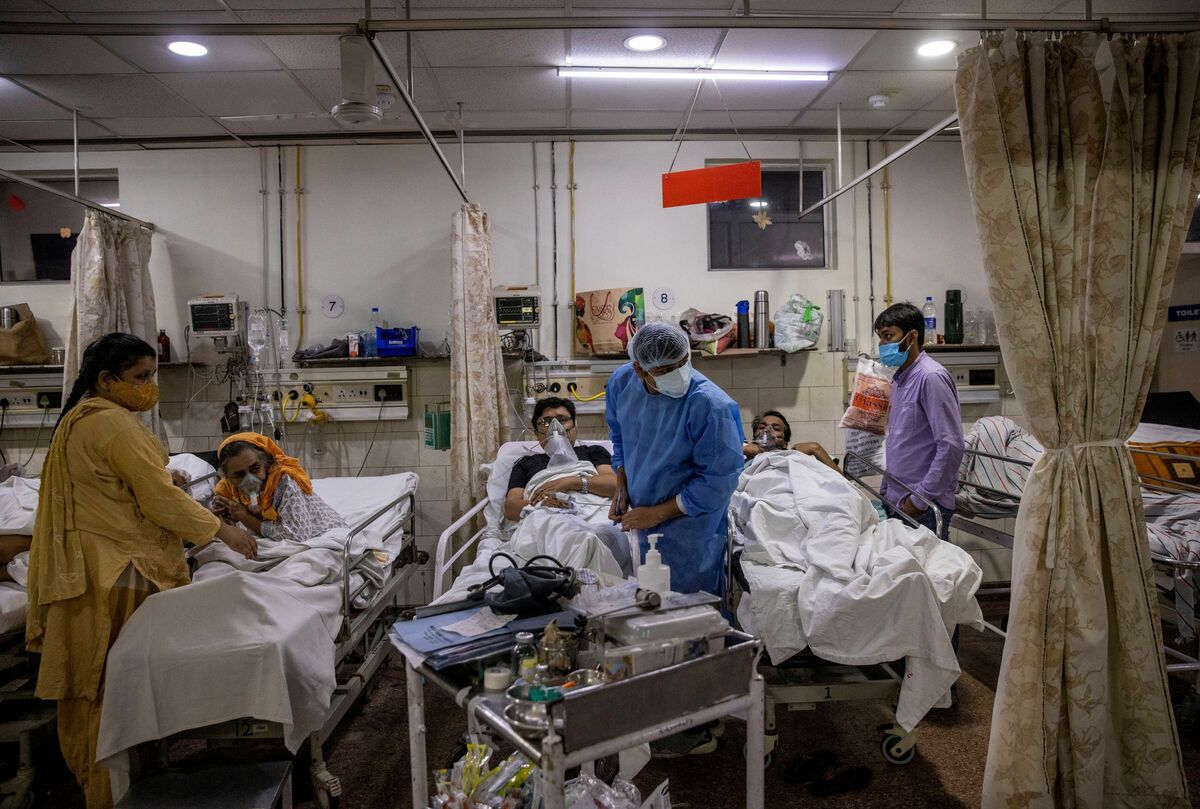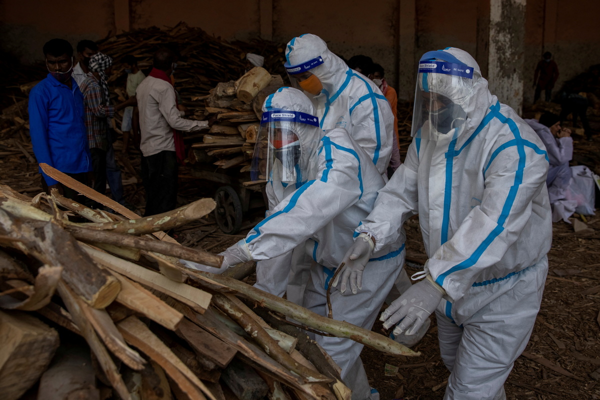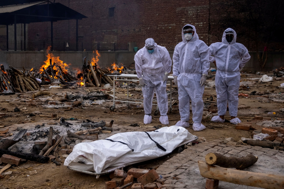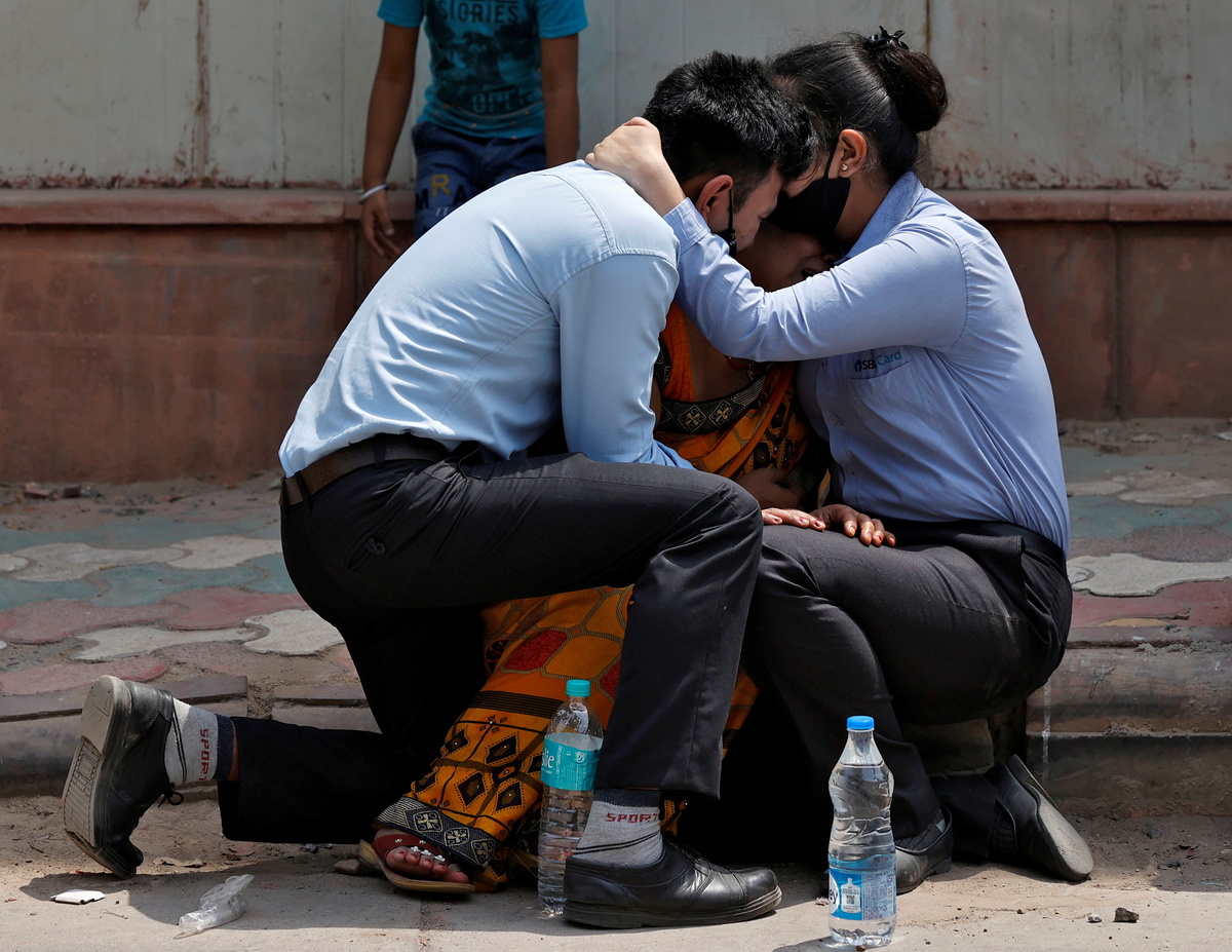 Family members mourn after Shayam Narayan is declared dead outside the coronavirus disease (COVID-19) casualty ward, at Guru Teg Bahadur hospital, amidst the spread of the disease in New Delhi, India, April 23, 2021. REUTERS/Danish Siddiqui/File Photo A medical worker tends to a patient suffering from the coronavirus disease (COVID-19), inside the ICU ward at Holy Family Hospital in New Delhi, India, April 29, 2021. REUTERS/Danish Siddiqui/File Photo A patient suffering from the coronavirus disease (COVID-19) receives treatment inside the emergency ward at Holy Family hospital in New Delhi, India, April 29, 2021. REUTERS/Danish Siddiqui/File Photo People suffering from the coronavirus disease (COVID-19) are treated inside an overcrowded casualty ward at a hospital in New Delhi, India, May 1, 2021. REUTERS/Danish Siddiqui/File Photo Roshan Lal, 48, a villager with a breathing difficulty rests in a cot as he receives treatment at a makeshift open-air clinic, amidst the spread of the coronavirus disease (COVID-19), in Mewla Gopalgarh village, in Jewar district, in the northern state of Uttar Pradesh, India, May 16, 2021. REUTERS/Danish Siddiqui/File Photo Patients receive treatment inside a COVID-19 ward of a government-run hospital, amidst the coronavirus disease (COVID-19) pandemic, in Bijnor district, Uttar Pradesh, India, May 11, 2021. REUTERS/Danish Siddiqui/File Photo A man stands next to the body of his wife, who died due to breathing difficulties, inside an emergency ward of a government-run hospital, amidst the coronavirus disease (COVID-19) pandemic, in Bijnor, Uttar Pradesh, India, May 11, 2021. REUTERS/Danish Siddiqui/File Photo Relatives carry the body of a person, who died from complications related to the coronavirus disease (COVID-19), for cremation at a crematorium ground in New Delhi, India, April 28, 2021. REUTERS/Danish Siddiqui/File Photo People bury the body of a man, who died from complications related to the coronavirus disease (COVID-19), at a graveyard in New Delhi, India, April 16, 2021. REUTERS/Danish Siddiqui/File Photo Relatives prepare to cremate the body of a person who died from complications related to the coronavirus disease (COVID-19), at a crematorium ground in New Delhi, India, April 28, 2021. REUTERS/Danish Siddiqui/File Photo Men wearing protective suits stand next to the body of their relative, who died from complications related to the coronavirus disease (COVID-19), before her cremation at a crematorium ground in New Delhi, India, May 4, 2021. REUTERS/Danish Siddiqui/File Photo The grounds are prepared for a mass cremation of coronavirus disease (COVID-19) victims in New Delhi, India, April 28, 2021. Picture taken with a drone. REUTERS/Danish Siddiqui/File Photo People wait to cremate victims who died due to complications related to the coronavirus disease (COVID-19), at a crematorium ground in New Delhi, India, April 23, 2021. REUTERS/Danish Siddiqui/File Photo People cremate the bodies of victims of the coronavirus disease (COVID-19), at a crematorium ground in New Delhi, India, April 24, 2021. REUTERS/Danish Siddiqui/File Photo Urns containing ashes after final rites of people including those who died from complications related to the coronavirus disease (COVID-19), await immersion due to lockdown, at a crematorium in New Delhi, India, May 6, 2021. REUTERS/Danish Siddiqui/File Photo