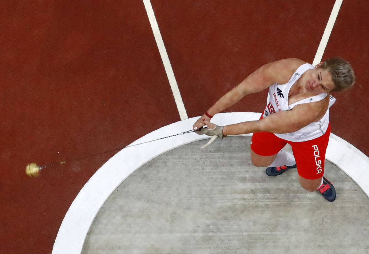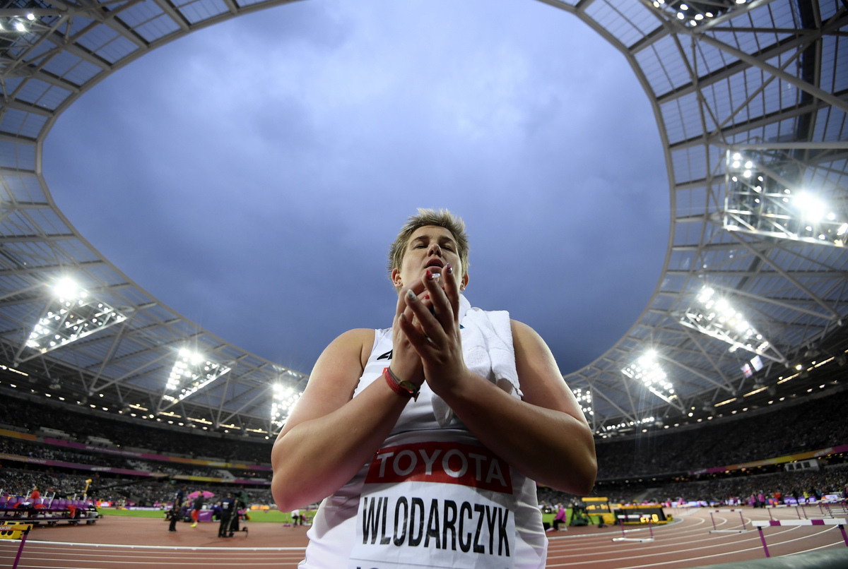 Wlodarczyk had numerous supporters draped in Polish flags watching from the stands. But she also had support of a different kind, as she was throwing with the hammer glove used by her mentor and great friend Kamila Skolimowska.