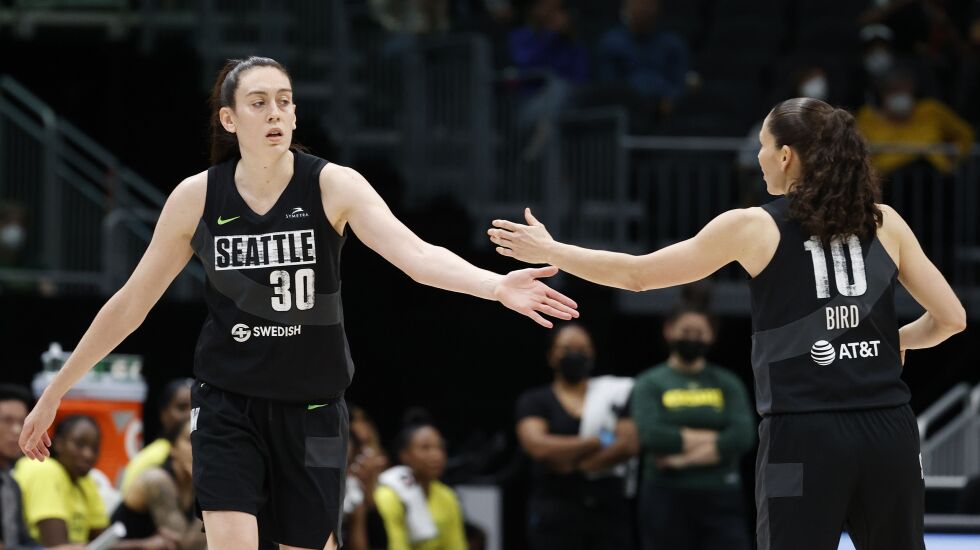 The league soon will be in the hands of the Aces’ A’ja Wilson, 25, and the Storm’s Breanna Stewart, 27, if it isn’t already. They are the All-Star captains — and next-level talents — and Wilson scooped up Parker with the No. 1 pick in the draft of starters and reserves.