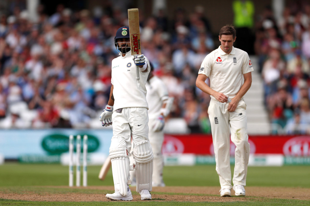 Kohli, having compiled his 18th test fifty, carried on confidently and looked set for his 23rd test hundred, and second of the series, until tempted to drive at a rare Rashid turner which Ben Stokes gobbled up at slip.