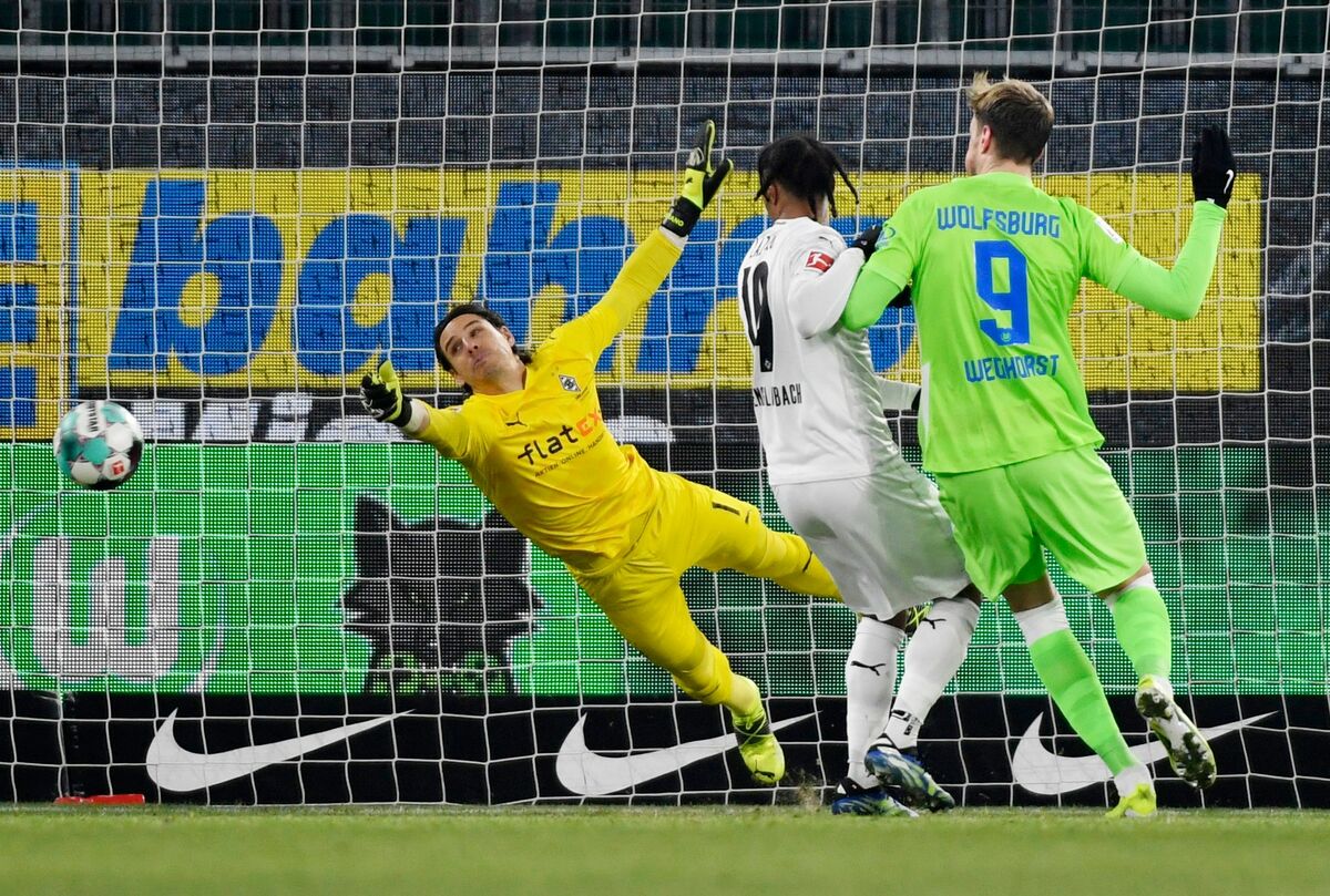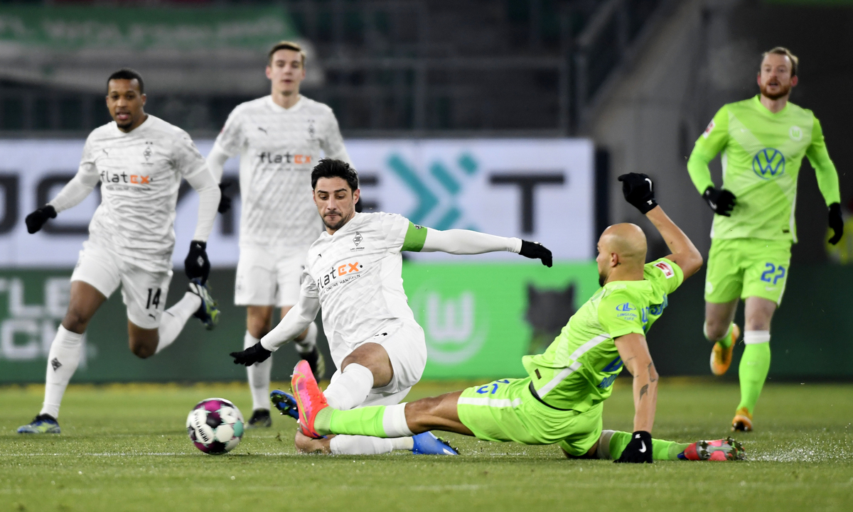 Soccer Football - Bundesliga - VfL Wolfsburg v Borussia Moenchengladbach - Volkswagen Arena, Wolfsburg, Germany - February 14, 2021 VfL Wolfsburg's Kevin Mbabu in action Pool via REUTERS/Fabian Bimmer Soccer Football - Bundesliga - VfL Wolfsburg v Borussia Moenchengladbach - Volkswagen Arena, Wolfsburg, Germany - February 14, 2021 VfL Wolfsburg's John Brooks in action with Borussia Moenchengladbach's Lars Stindl Pool via REUTERS/Fabian Bimmer Soccer Football - Bundesliga - VfL Wolfsburg v Borussia Moenchengladbach - Volkswagen Arena, Wolfsburg, Germany - February 14, 2021 Borussia Moenchengladbach's Yann Sommer in action Pool via REUTERS/Fabian Bimmer DFL regulations prohibit any use of photographs as image sequences and/or quasi-video.