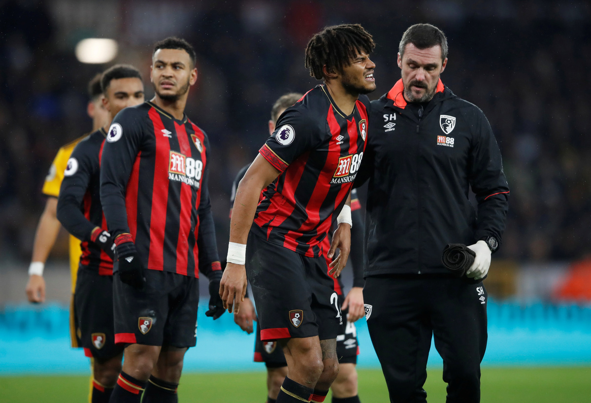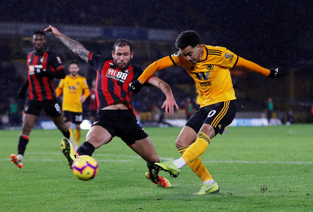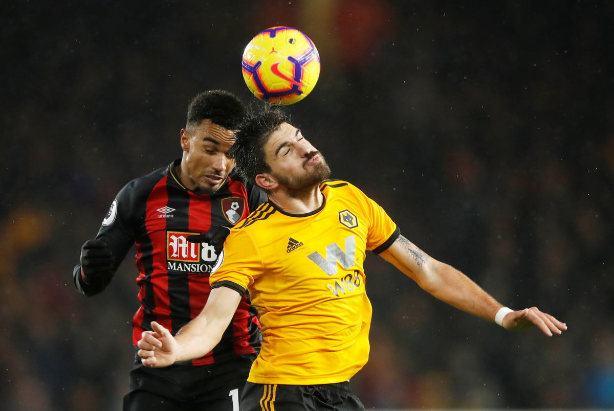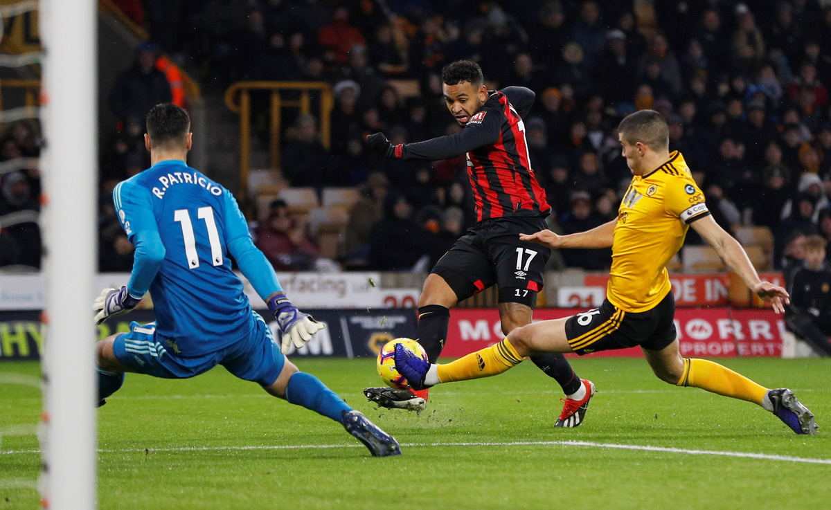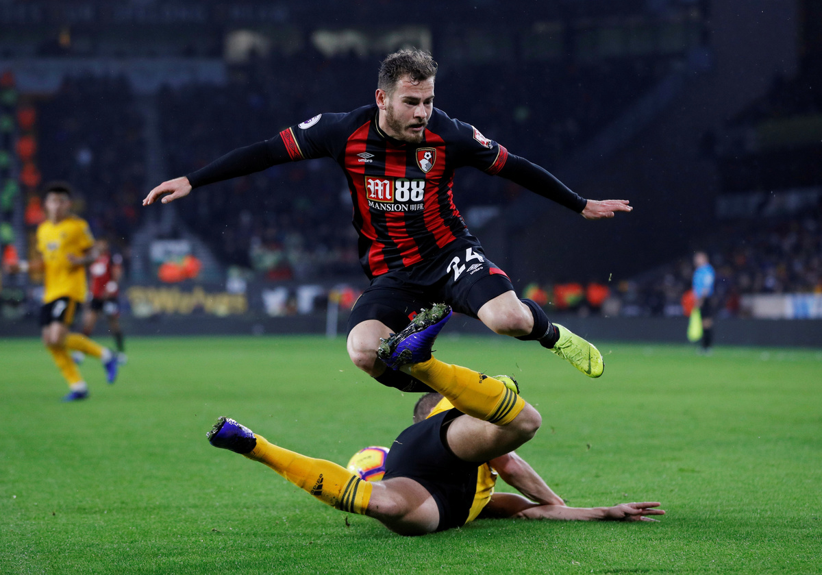 Soccer Football - Premier League - Wolverhampton Wanderers v AFC Bournemouth - Molineux Stadium, Wolverhampton, Britain - December 15, 2018 Bournemouth's Ryan Fraser in action with Wolverhampton Wanderers' Diogo Jota Action Images via Reuters/Carl Recine Soccer Football - Premier League - Wolverhampton Wanderers v AFC Bournemouth - Molineux Stadium, Wolverhampton, Britain - December 15, 2018 Bournemouth's Ryan Fraser in action REUTERS/Darren Staples Soccer Football - Premier League - Wolverhampton Wanderers v AFC Bournemouth - Molineux Stadium, Wolverhampton, Britain - December 15, 2018 Bournemouth's Lys Mousset in action with Wolverhampton Wanderers' Ruben Neves Action Images via Reuters/Carl Recine Soccer Football - Premier League - Wolverhampton Wanderers v AFC Bournemouth - Molineux Stadium, Wolverhampton, Britain - December 15, 2018 Bournemouth's Tyrone Mings receives medical attention after sustaining an injury Action Images via Reuters/Carl Recine Soccer Football - Premier League - Wolverhampton Wanderers v AFC Bournemouth - Molineux Stadium, Wolverhampton, Britain - December 15, 2018 Bournemouth's Joshua King shoots at goal REUTERS/Darren Staples