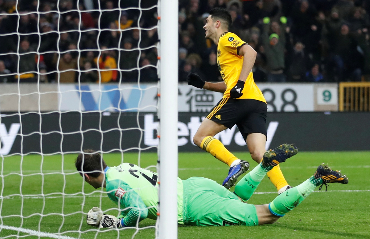 Soccer Football - Premier League - Wolverhampton Wanderers v AFC Bournemouth - Molineux Stadium, Wolverhampton, Britain - December 15, 2018 Wolverhampton Wanderers' Raul Jimenez scores their first goal Action Images via Reuters/Carl Recine