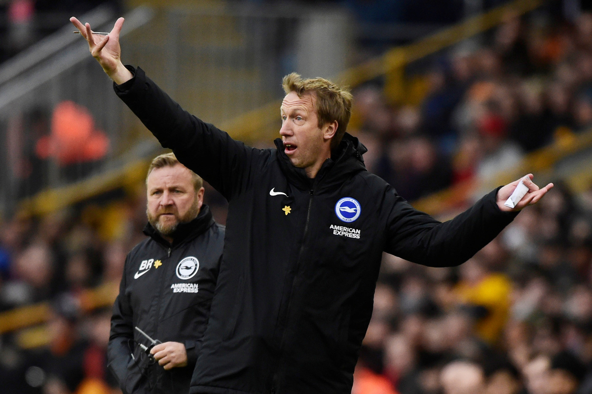 Soccer Football - Premier League - Wolverhampton Wanderers v Brighton & Hove Albion - Molineux Stadium, Wolverhampton, Britain - March 7, 2020 Wolverhampton Wanderers manager Nuno Espirito Santo applauds fans at the end of the match Action Images via Reuters/Craig Brough Soccer Football - Premier League - Wolverhampton Wanderers v Brighton & Hove Albion - Molineux Stadium, Wolverhampton, Britain - March 7, 2020 Brighton & Hove Albion manager Graham Potter REUTERS/Rebecca Naden EDITORIAL USE ONLY. No use with unauthorized audio, video, data, fixture lists, club/league logos or "live" services. Online in-match use limited to 75 images, no video emulation. No use in betting, games or single club/league/player publications. Please contact your account representative for further details.