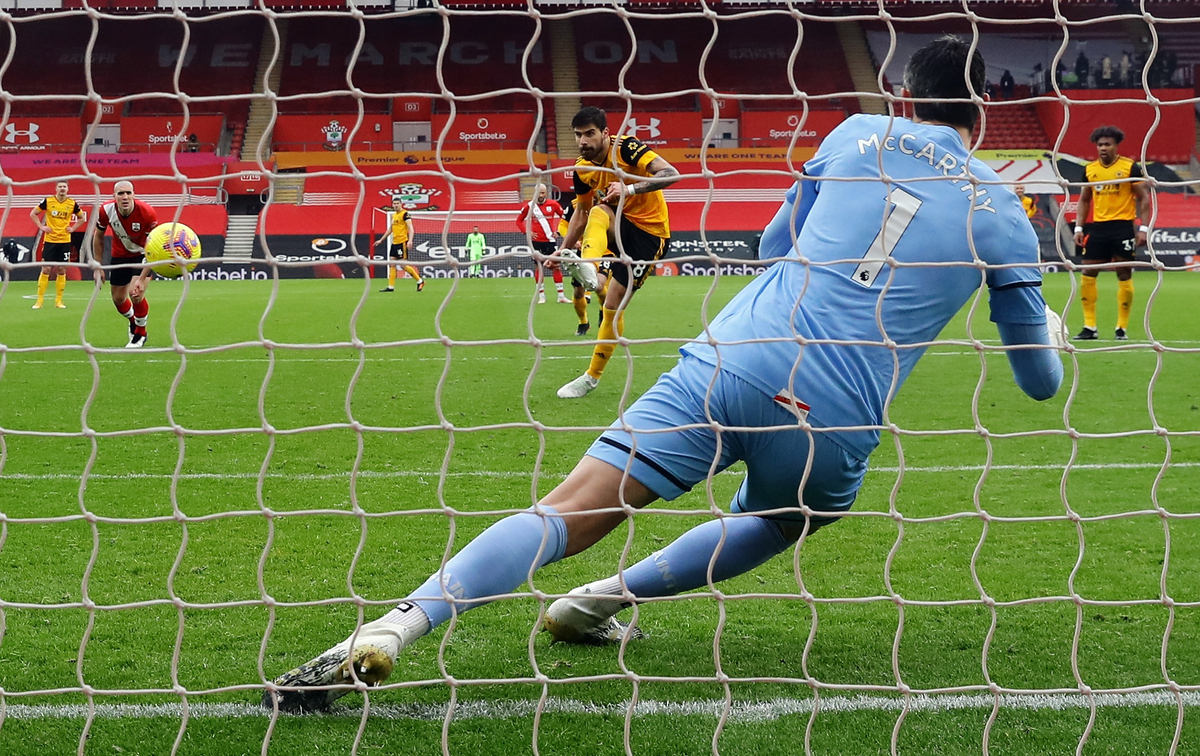But Wolves were more fluid going forward in the second half and were handed a lifeline when Nelson Semedo's cross hit Ryan Bertrand's arm. Neves made no mistake in beating Alex McCarthy from the penalty spot.
