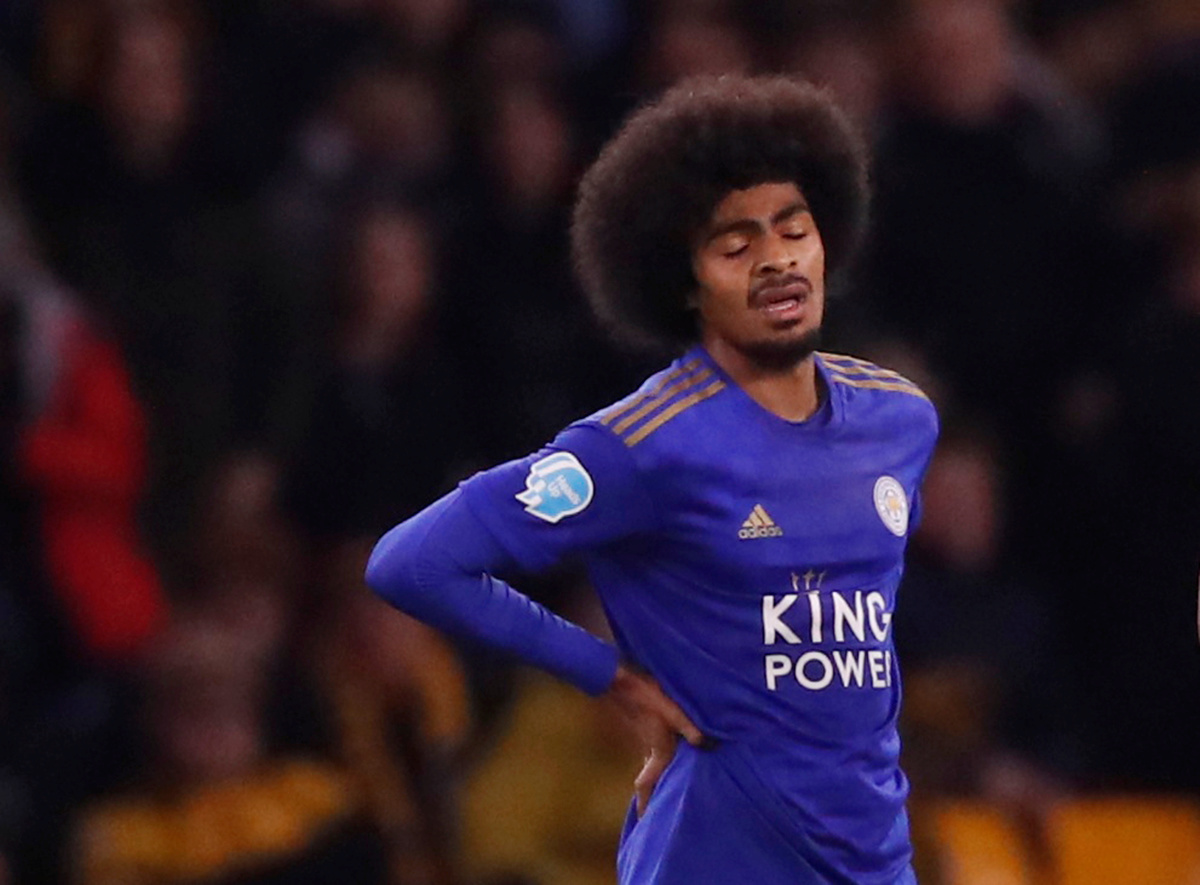 Soccer Football - Premier League - Wolverhampton Wanderers v Leicester City - Molineux Stadium, Wolverhampton, Britain - February 14, 2020 Leicester City's Hamza Choudhury looks dejected after he is shown a red card by referee Mike Dean Action Images via Reuters/Andrew Boyers