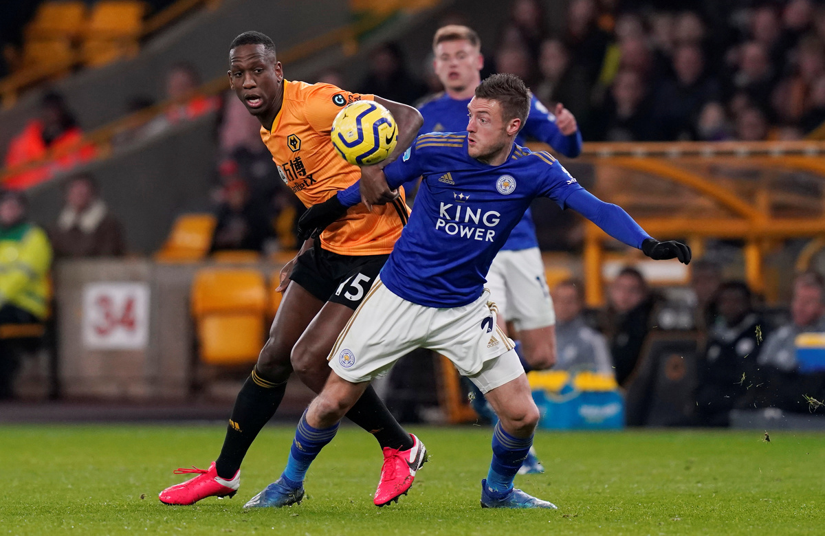 Soccer Football - Premier League - Wolverhampton Wanderers v Leicester City - Molineux Stadium, Wolverhampton, Britain - February 14, 2020 Leicester City's Jamie Vardy in action with Wolverhampton Wanderers' Willy Boly REUTERS/Andrew Yates