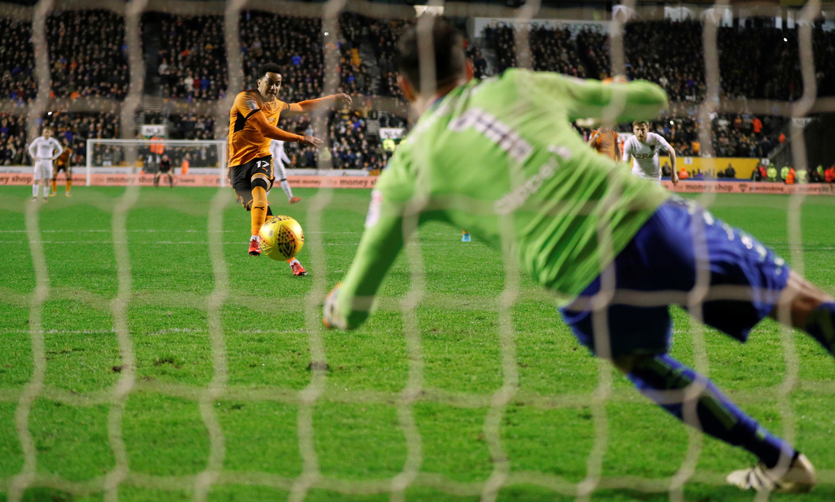 Soccer Football - Championship - Wolverhampton Wanderers vs Leeds United - Molineux Stadium, Wolverhampton, Britain - November 22, 2017 Wolverhampton Wanderers' Helder Costa scores their fourth goal from the penalty spot Action Images/John Sibley