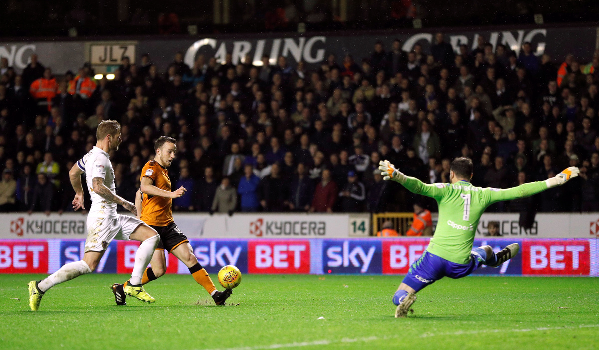 Soccer Football - Championship - Wolverhampton Wanderers vs Leeds United - Molineux Stadium, Wolverhampton, Britain - November 22, 2017 Wolverhampton Wanderers’ Diogo Jota scores their third goal Action Images/John Sibley