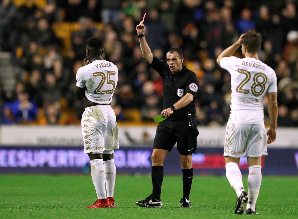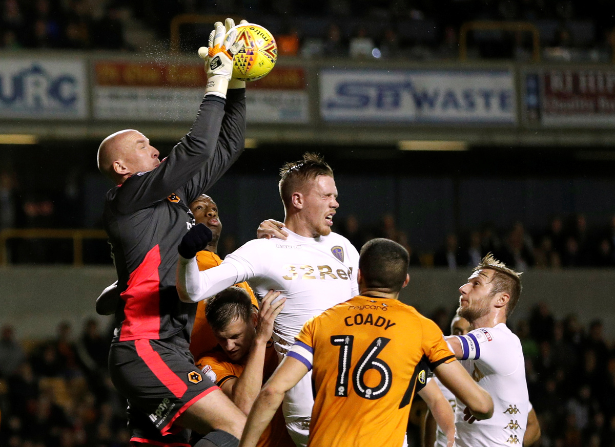 Soccer Football - Championship - Wolverhampton Wanderers vs Leeds United - Molineux Stadium, Wolverhampton, Britain - November 22, 2017 Wolverhampton Wanderers' John Ruddy saves from Leeds United's Pontus Jansson Action Images/John Sibley Soccer Football - Championship - Wolverhampton Wanderers vs Leeds United - Molineux Stadium, Wolverhampton, Britain - November 22, 2017 Wolves' Ivan Cavaleiro scores their second goal Action Images/Paul Childs Soccer Football - Championship - Wolverhampton Wanderers vs Leeds United - Molineux Stadium, Wolverhampton, Britain - November 22, 2017 Wolves' Barry Douglas scores their first goal Action Images/Paul Childs Soccer Football - Championship - Wolverhampton Wanderers vs Leeds United - Molineux Stadium, Wolverhampton, Britain - November 22, 2017 Wolverhampton Wanderers’ Barry Douglas celebrates scoring their first goal Action Images/John Sibley Soccer Football - Championship - Wolverhampton Wanderers vs Leeds United - Molineux Stadium, Wolverhampton, Britain - November 22, 2017 Leeds United's Ronaldo Vieira is sent off by referee Geoff Eltringham Action Images/John Sibley