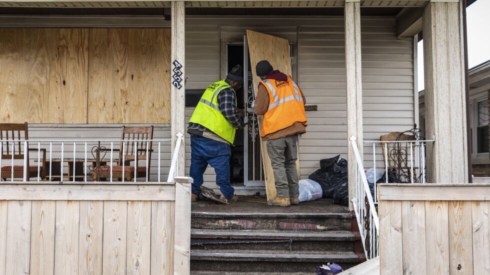 The day after the fire, contractors boarded up broken windows and a door on the home’s porch, where an empty stroller remained. Neighbors walked past and told reporters about the quiet, working-class family that have lived in the home for several years.