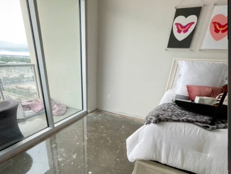 Fortunately, the fire didn’t get that far because the sprinkler system turned on. However, the sprinklers sprayed water over her closet, laundry room, television, and other things, which created stained water on pretty much everything in the apartment.