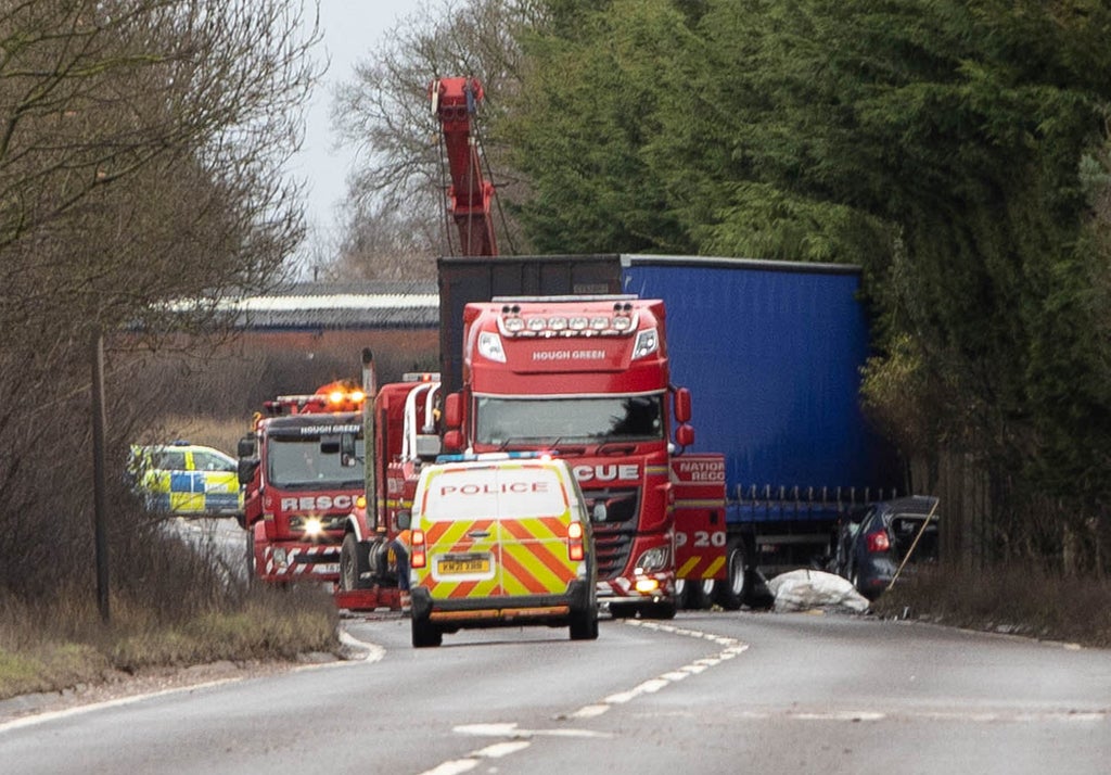 The police had originally said the crash was between a grey Ford Focus and a tractor, but have since corrected their statement to say a lorry was involved.